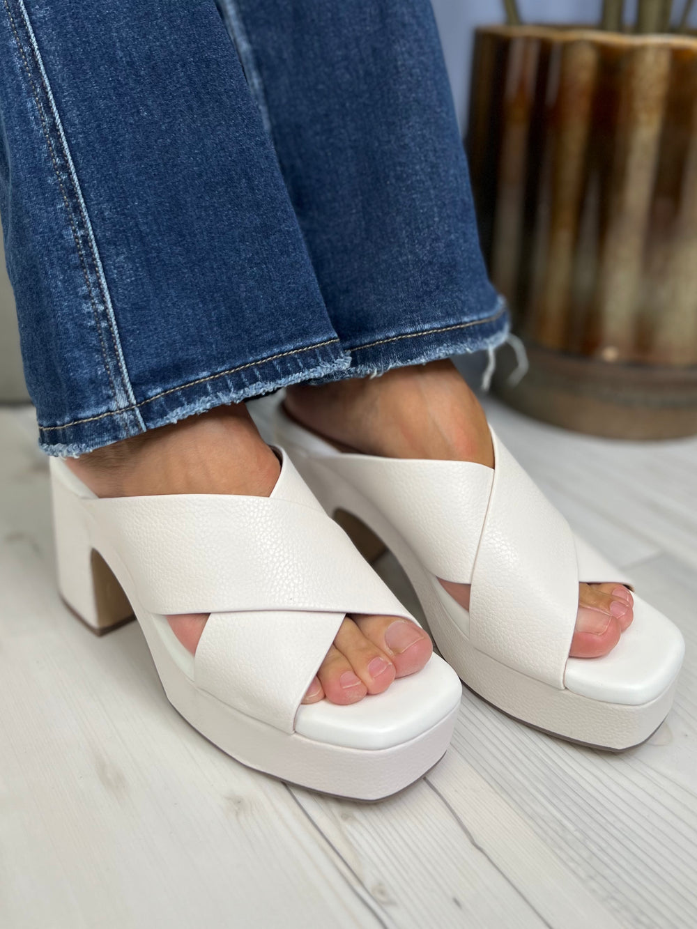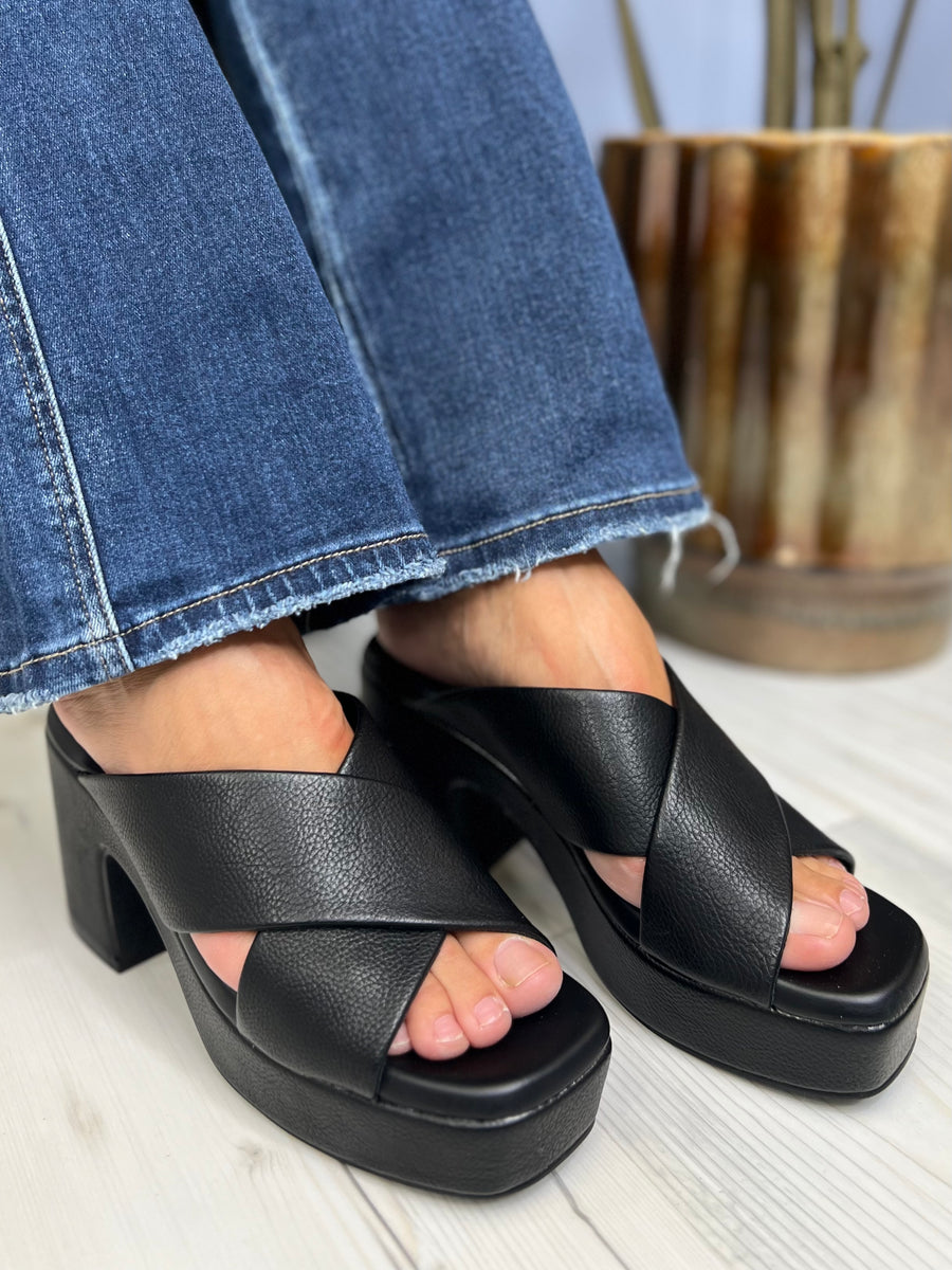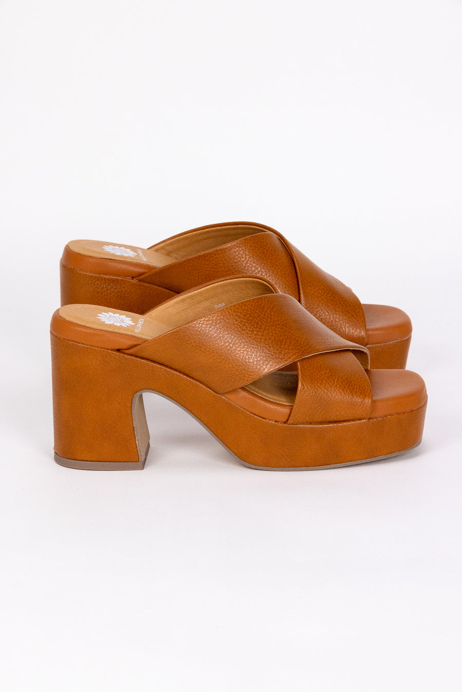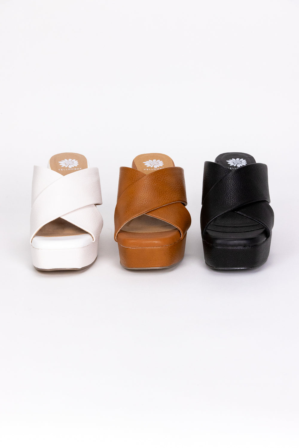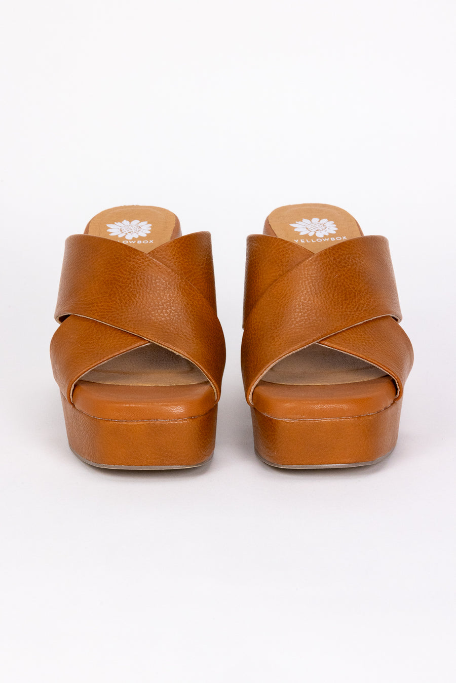 The Ovilia Platform Heel by Yellow Box is a classic crossband slide. They feature a rounded square toe, soft tumbled grain faux leather, signature Yellow Box high rebound footbeds, and 3.75" heel. From day to night, these are sure to be a go-to sandal!