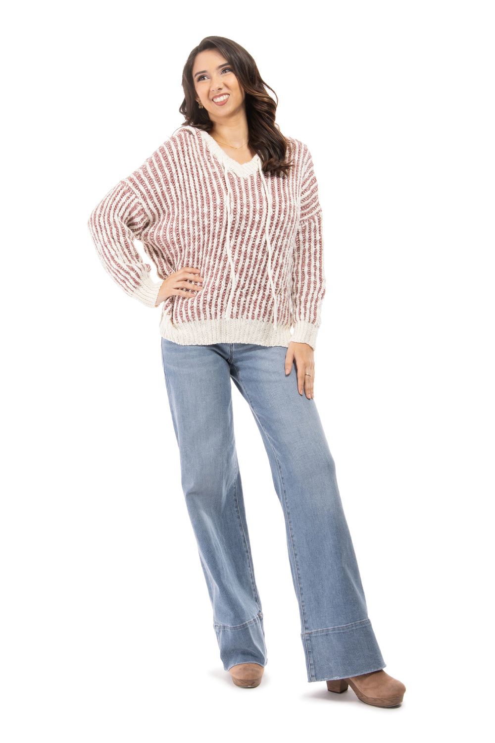 The Party It Up Top by POL Clothing is a thick knit hooded sweater that easily goes from fall to winter! It features a hooded neckline with functioning drawstring, dropped shoulder, cuffed and ribbed sleeves, straight hemline with flattering side slits, and vertical knitting. Wear this sweater on its own or layered over your favorite shirt!