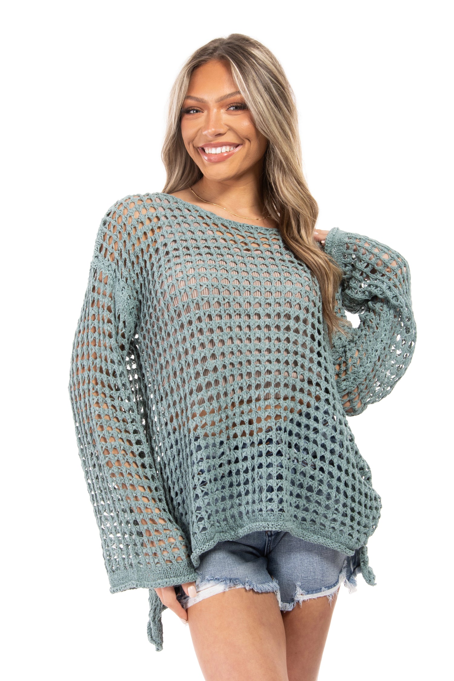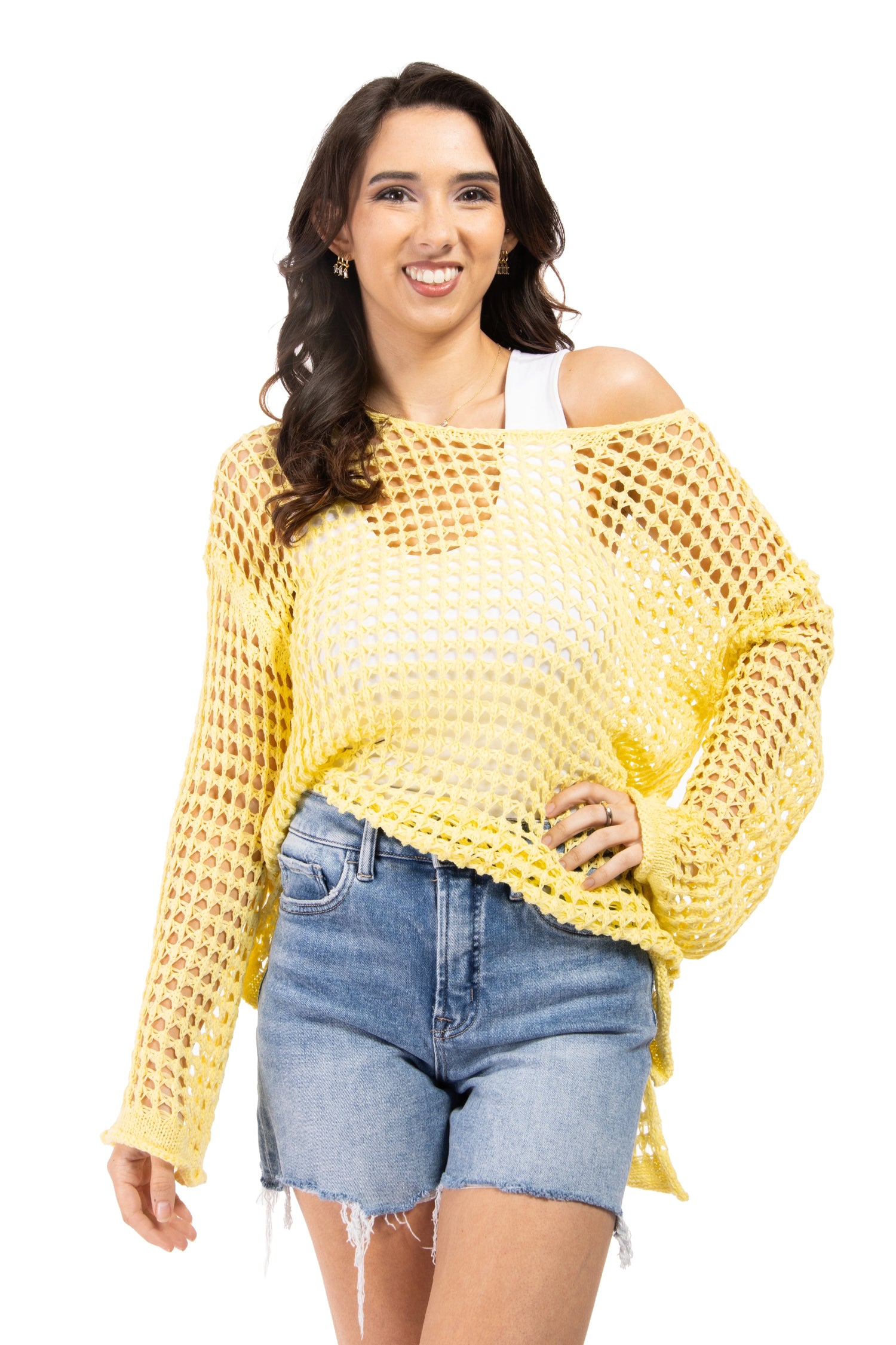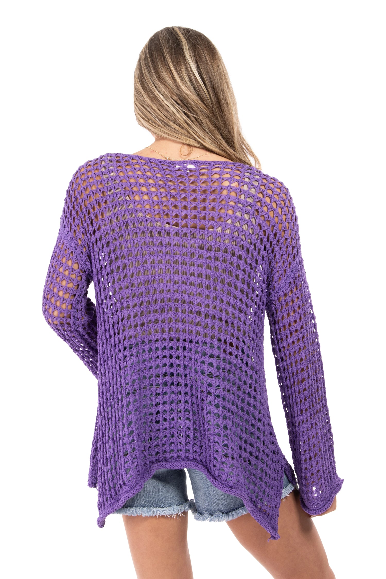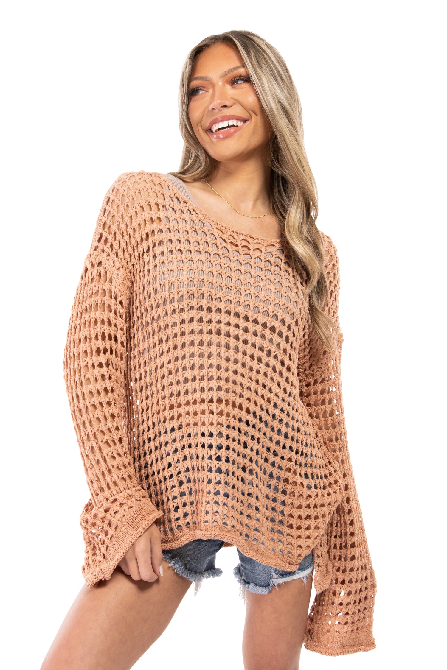Add a little passion to every outfit with the Passion Sweater from POL. This open knit sweater features drop shoulder bell sleeves, a boat neckline, flattering side slits, and a hi-lo hemline. The Passion Sweater can be worn over your favorite swimsuit top for a day at the beach, or over your favorite long sleeve as an added texture to any outfit. Wear this top off the shoulders for another unique outfit.