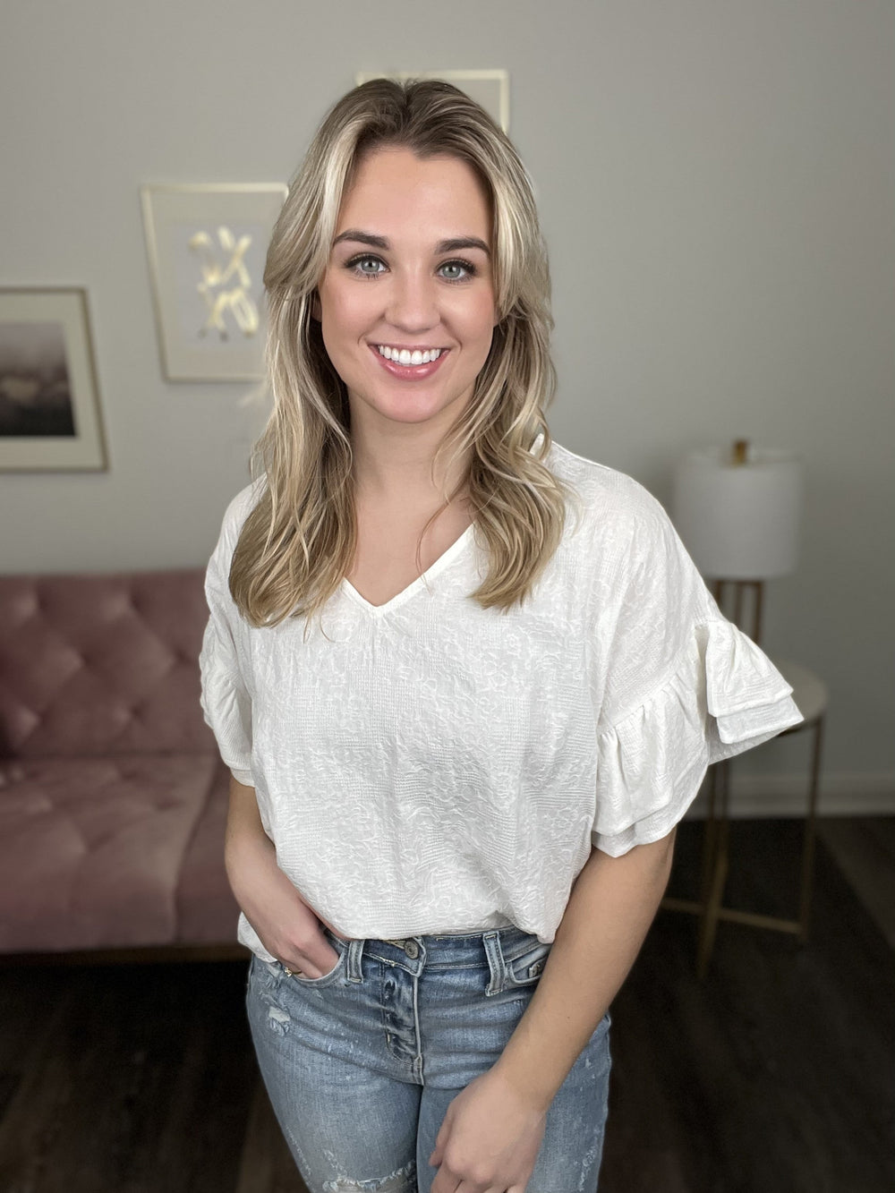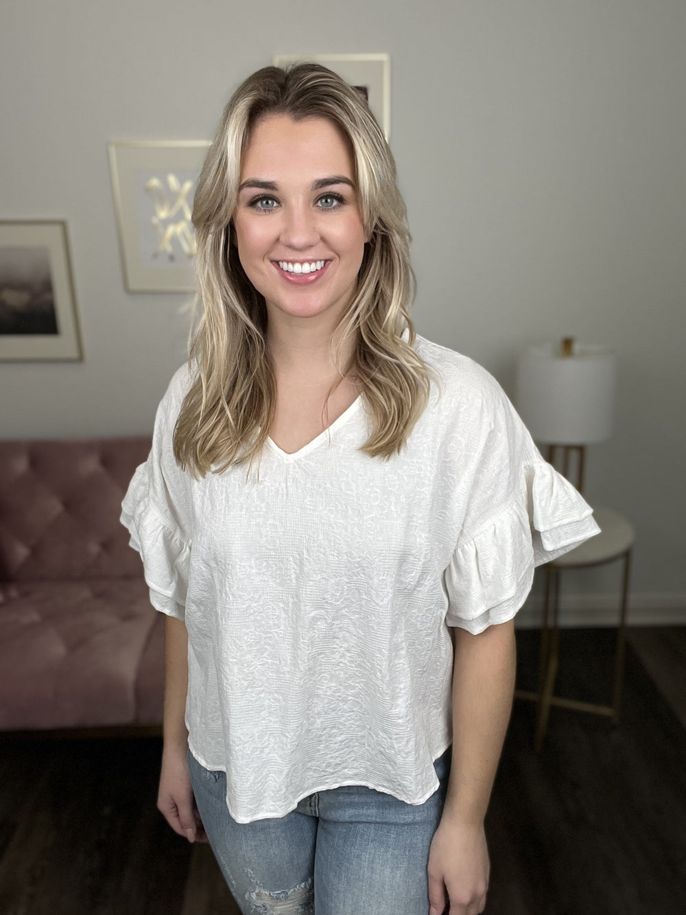 Past Times Women's Woven Ruffle Short Sleeve Top *Final Sale*