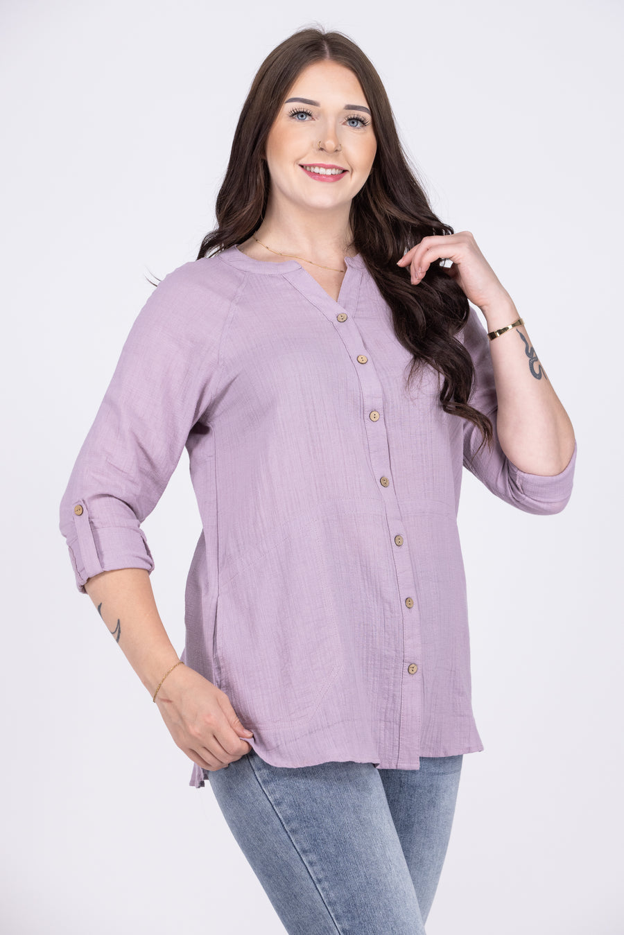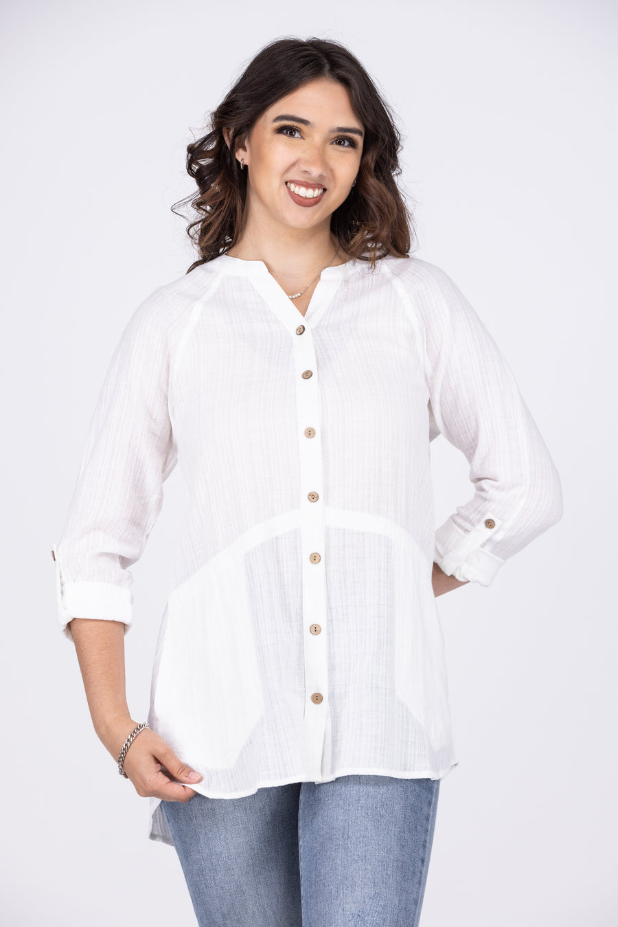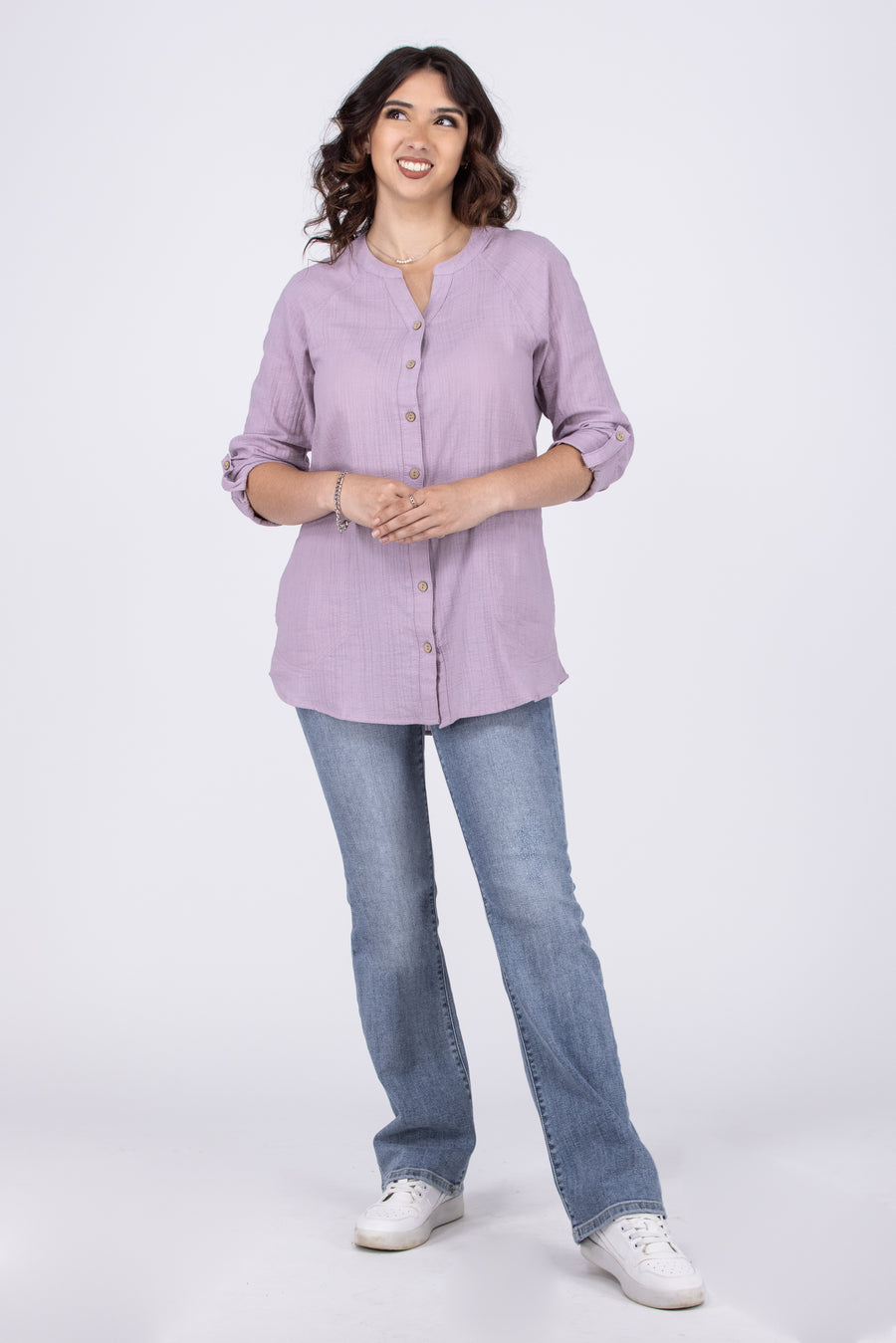 Perfect Vision Women's Cotton Button Down Long Sleeve Top