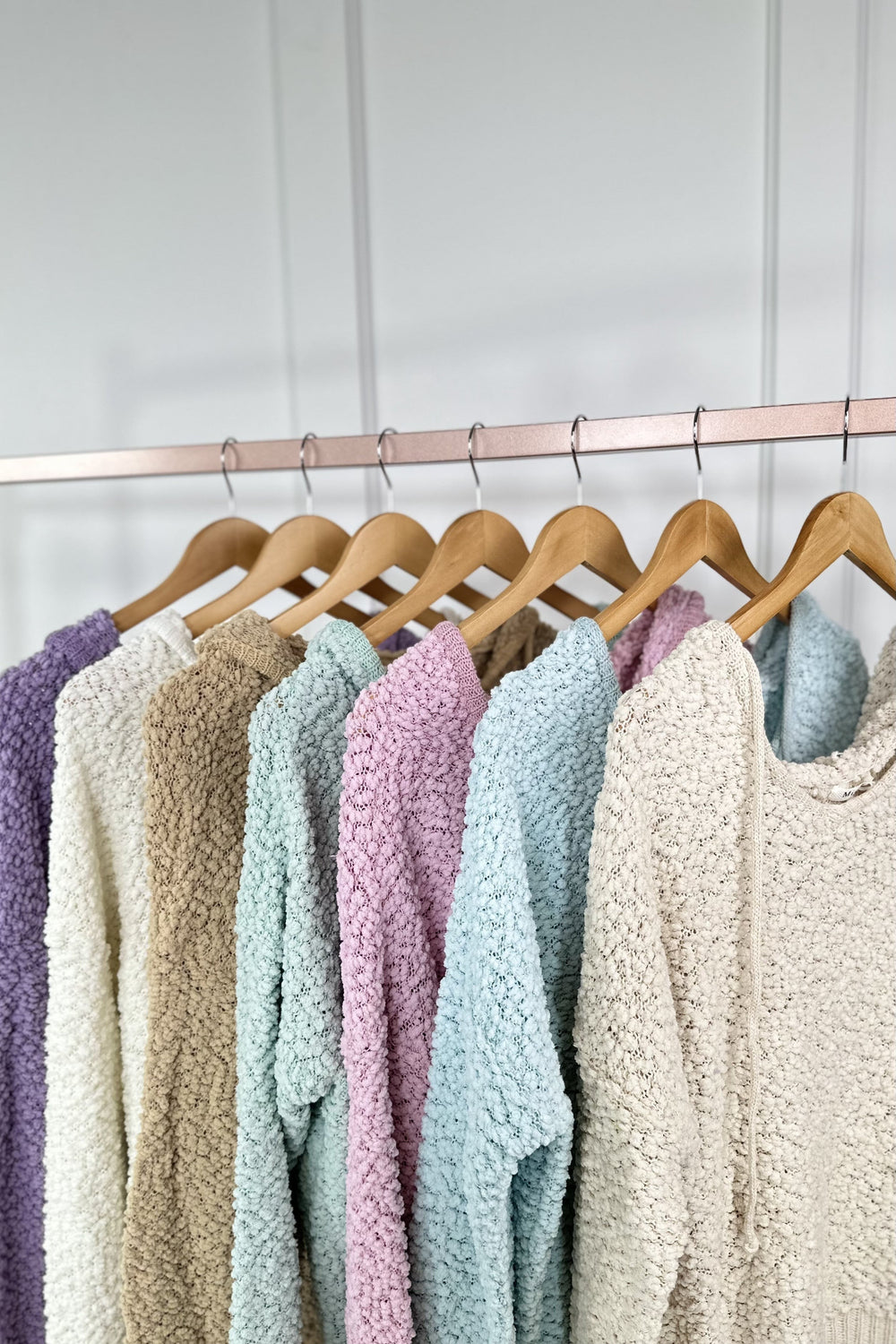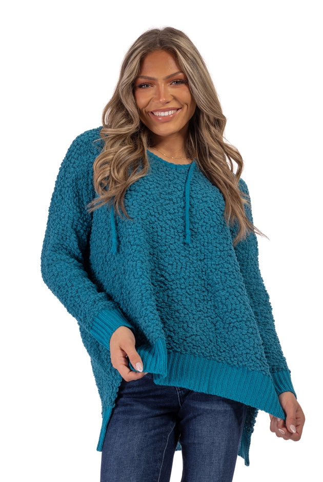 The Popcorn Sweater by Miracle is the perfect sweater that everyone needs in their wardrobe. You are going to want every color, you know Laura love its when she gets every color! This sweater features a v neckline with hood and functional drawstring, long sleeves, straight hemline and side slits for a slimming look.