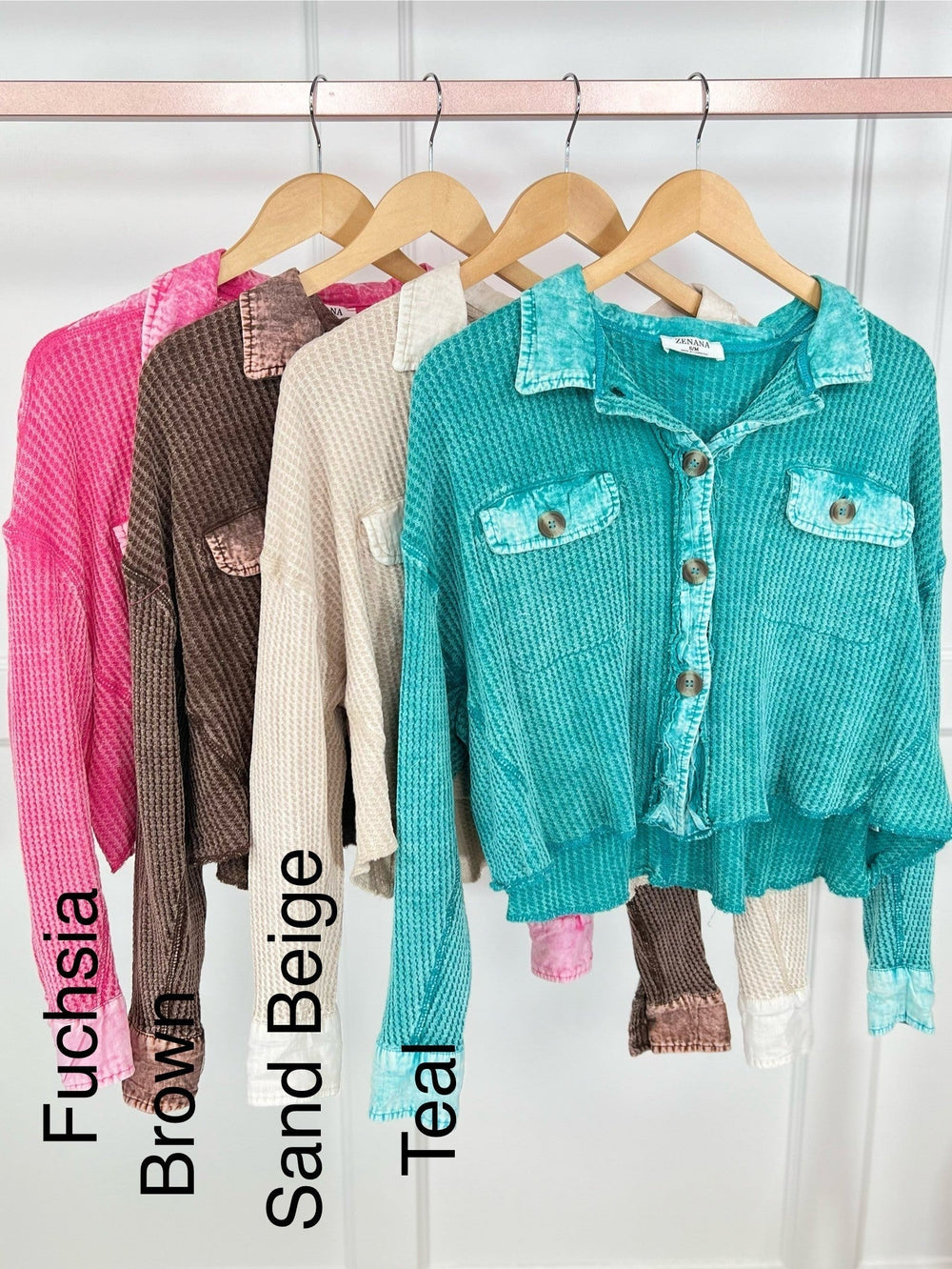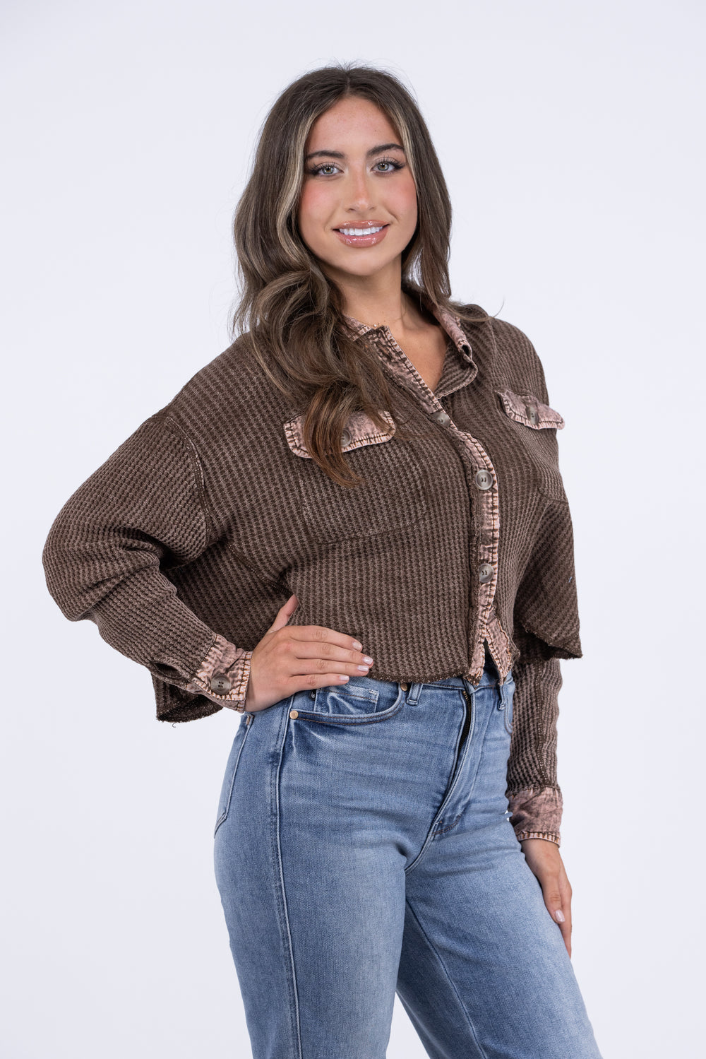 Play It Right Women's Acid Wash Waffle Cropped Shacket
