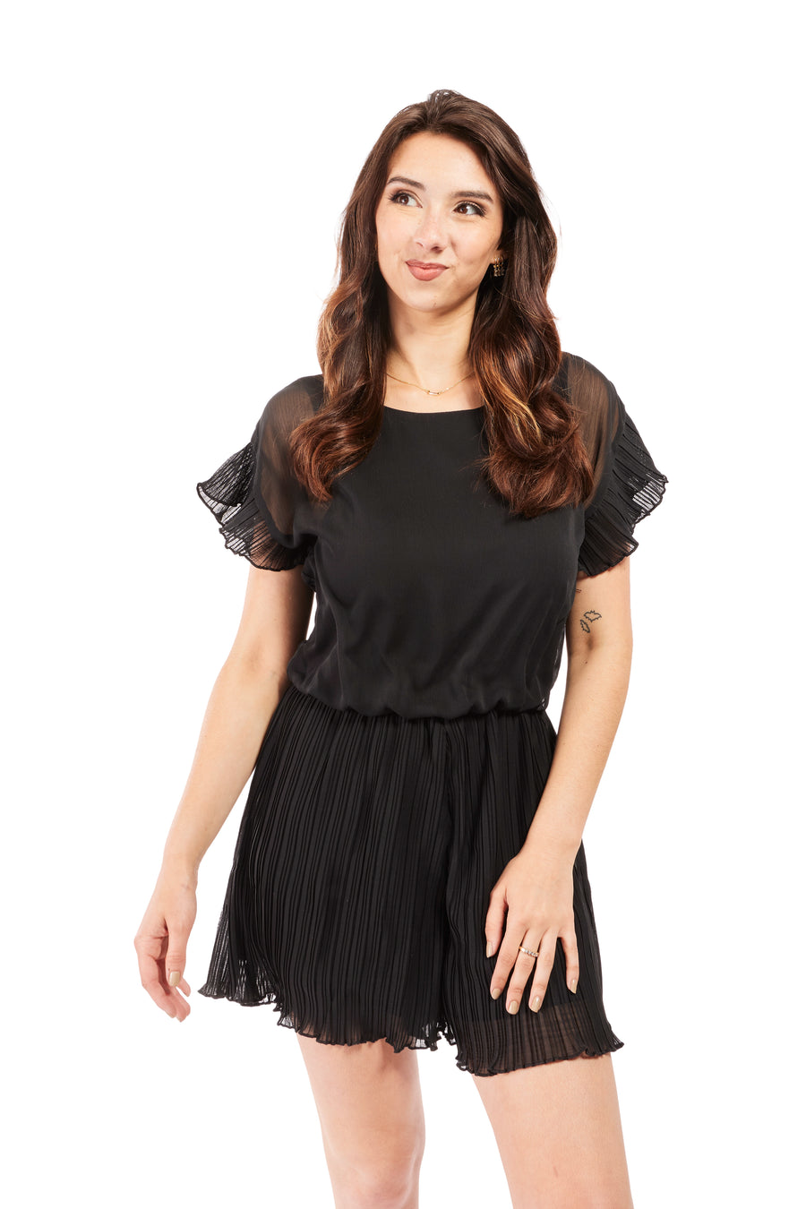 Pleated Women's Short Sleeve Romper
