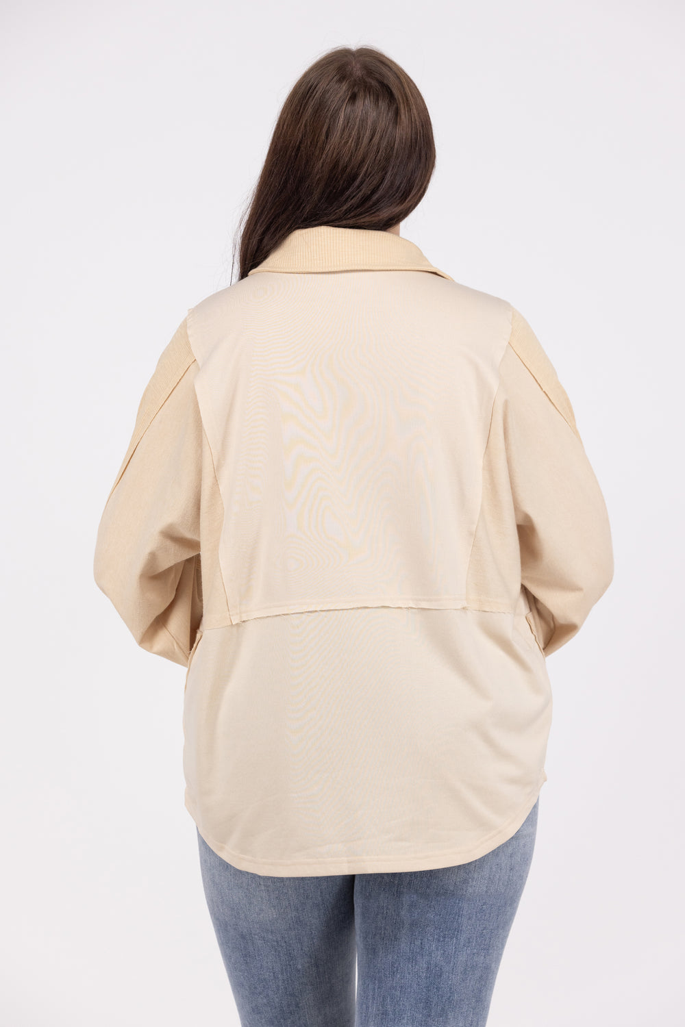 The Pocketful Of Contrast Top from Heyson is a lovely top that uses contrast as its main feature! There is a collared neckline, long cuffed sleeves, half front button down, two front pockets, and a rounded hemline. The monochromatic color scheme works perfectly with all the different fabrics. Pair this top with any kind of denim so a casual look!