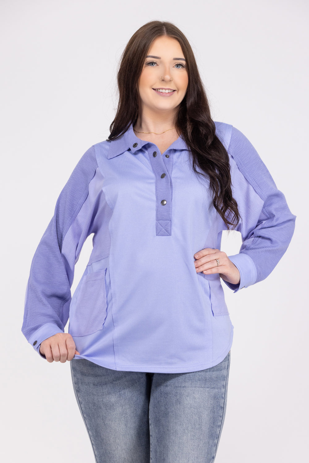 Pocketful Of Contrast Women's 1/2 Button Down Long Sleeve Top