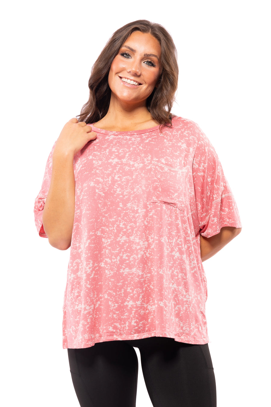 This Polar Top by Cotton Bleu will be your new favorite casual top! It features a rounded neckline, drop shoulders with short sleeves, a chest pocket, stitching design, a straight hemline with slits on each side. This lightweight Top can be worn casually with any pair of denim!