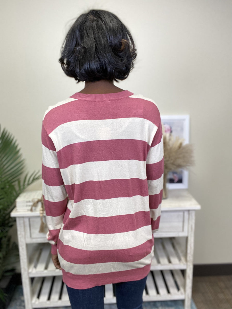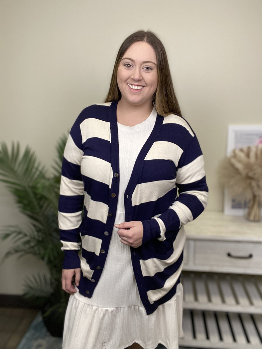 The Push It Good Cardigan By Oddi will be your new favorite go to cardigan! You Can wear this cardigan when hanging out with friends or going out and enjoying the day. This Cardigan features a V-neckline, button down, two front pockets, and stripes. The Push It Good Cardigan can be paired with your favorite outfits!