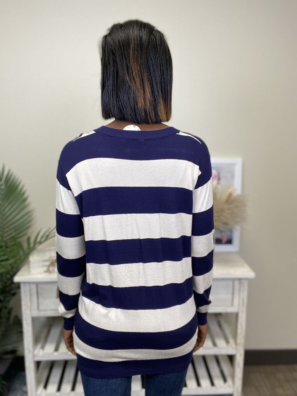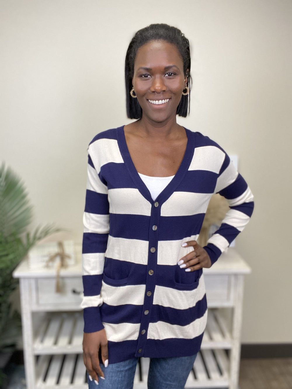 The Push It Good Cardigan By Oddi will be your new favorite go to cardigan! You Can wear this cardigan when hanging out with friends or going out and enjoying the day. This Cardigan features a V-neckline, button down, two front pockets, and stripes. The Push It Good Cardigan can be paired with your favorite outfits!