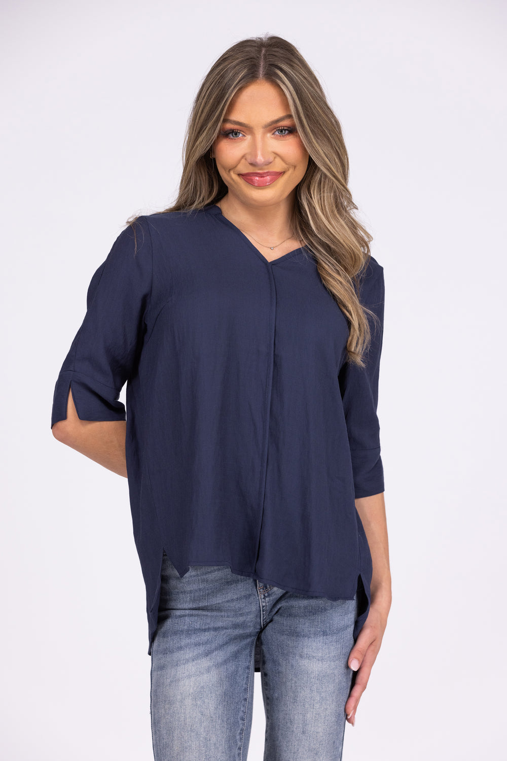 The Put It To The Test Top is a solid blouse. It features a rounded V neckline, 3/4 sleeves with slit, front seam accent and a hi low hemline. This top can be dressed up or down. It will pair well with your favorite denim or w your favorite dress/ casual bottoms for a day at the office!