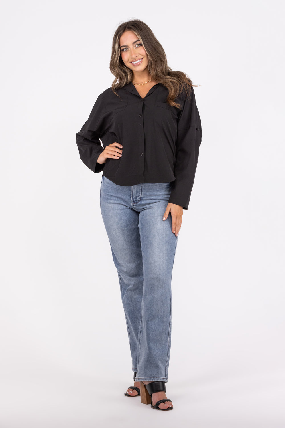 Putting In Work Women's Button Up Long Sleeve Top *Final Sale*