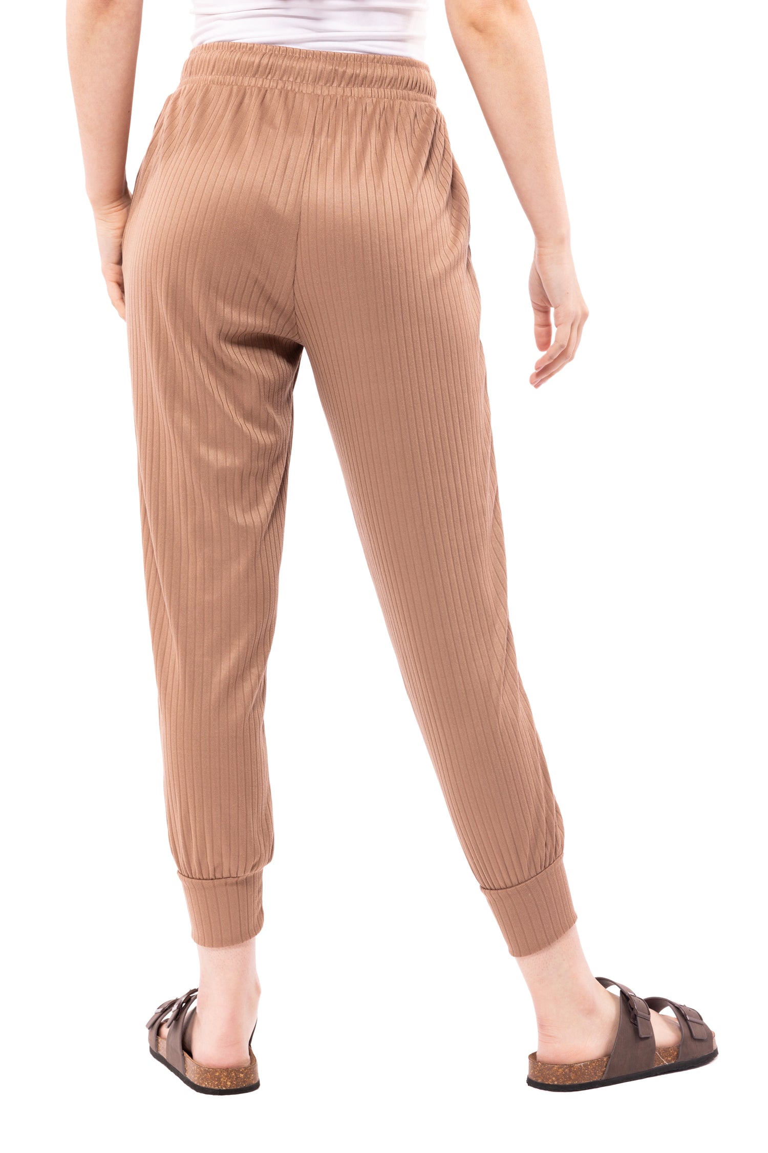 The Read Between The Lines Joggers by White Birch are a high waisted solid knit jogger with an elastic waist featuring an adjustable drawstring and side pockets. The fabric is a lightweight ribbed knit. Super comfy with just the right amount of stretch.