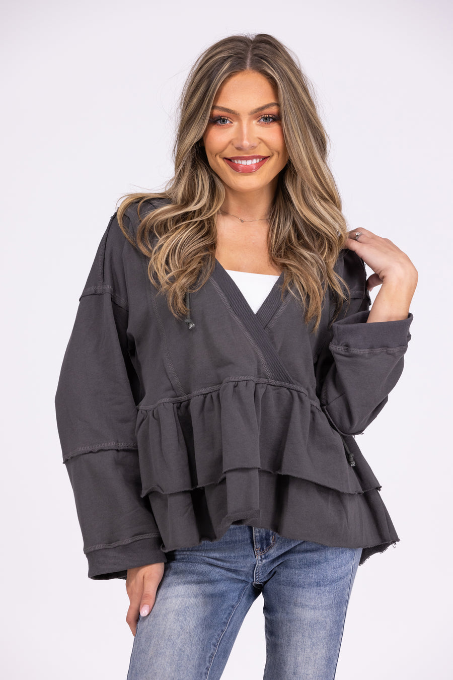 Ready to Ruffle Women's Long Sleeve Hoodie Top *Final Sale*