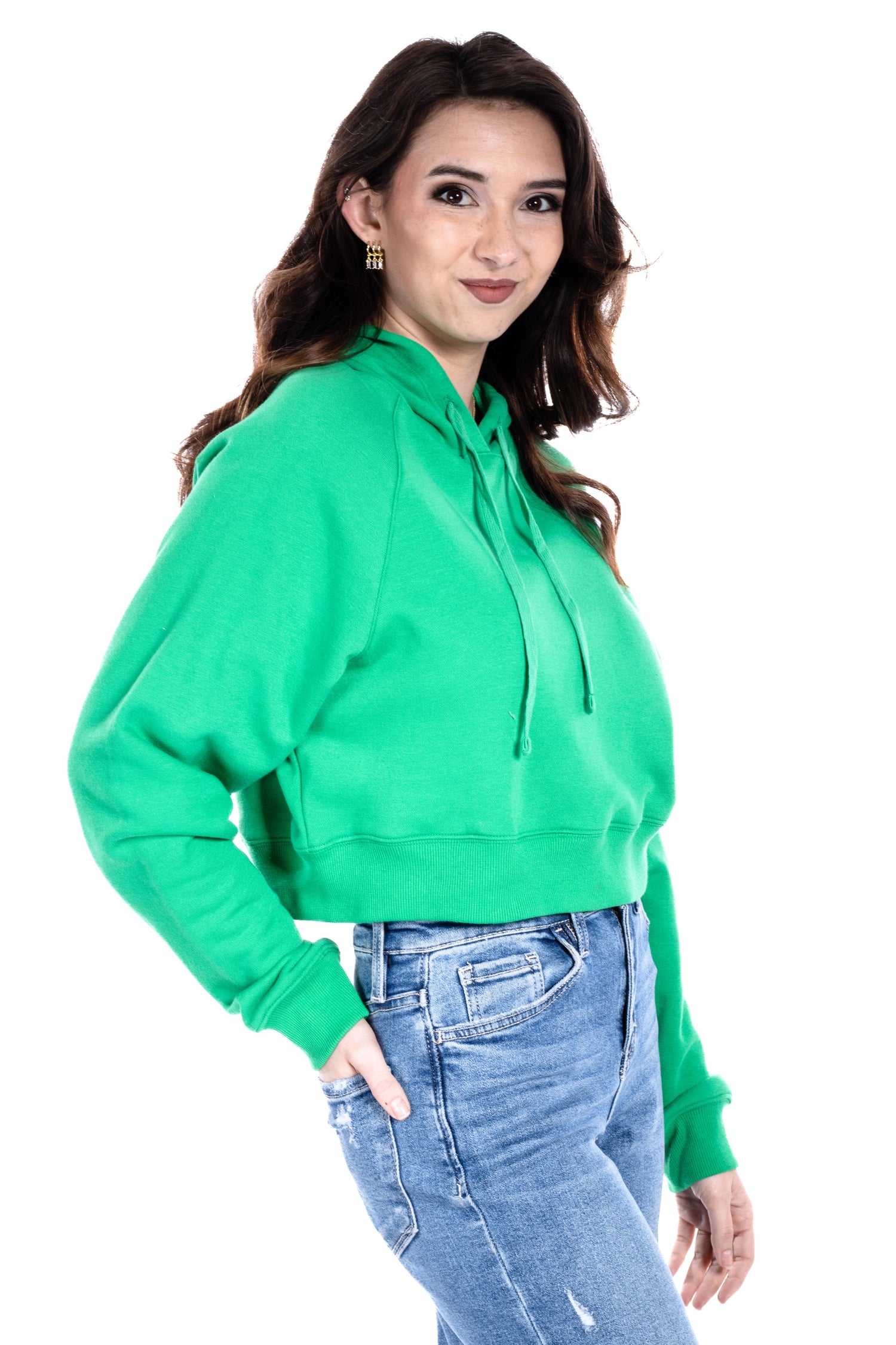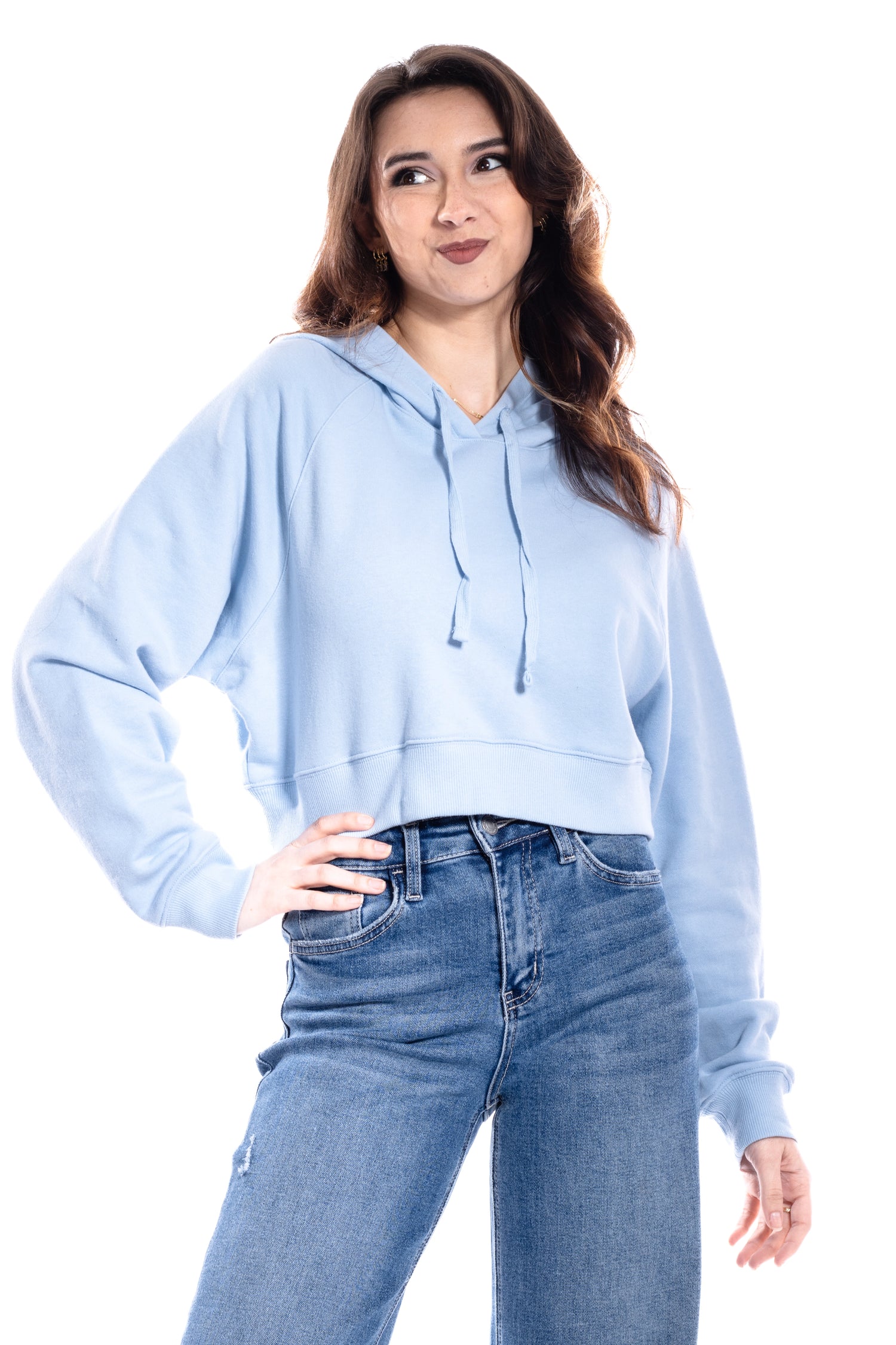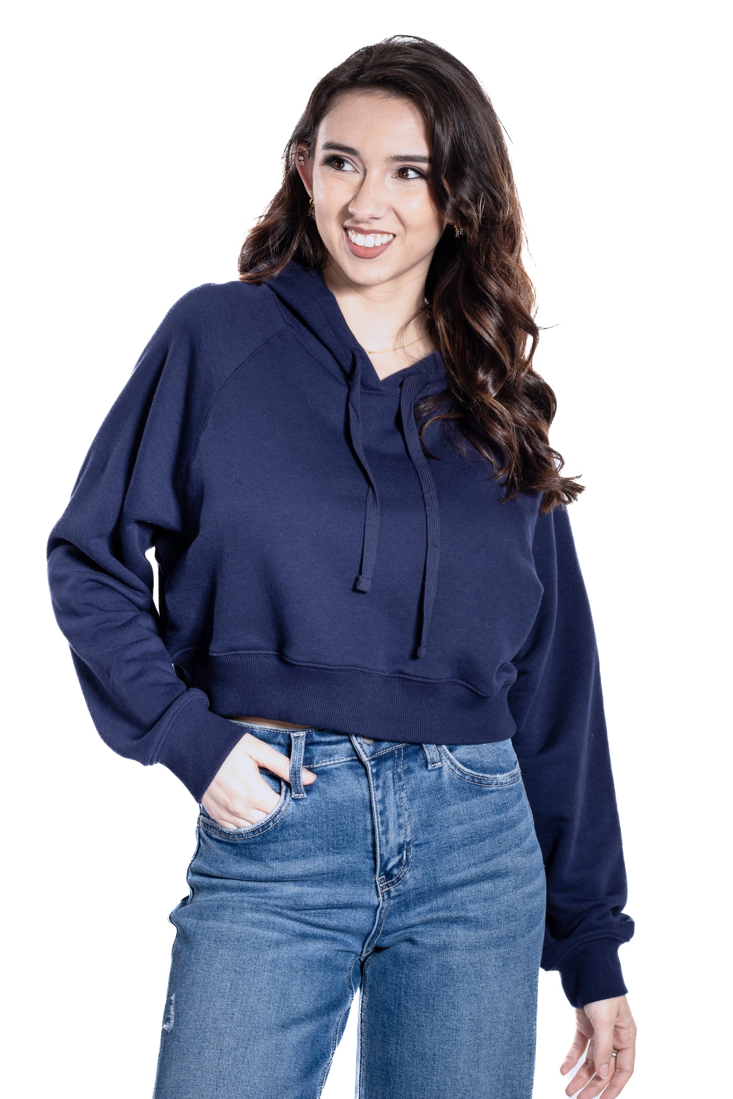 Take your relaxing to the next level with the Cropped Hoodie by Rae Mode. Featuring soft French terry fabric, a hood and adjustable drawstring. Perfect for lounging around the house when paired with the matching jogger sweatpants.