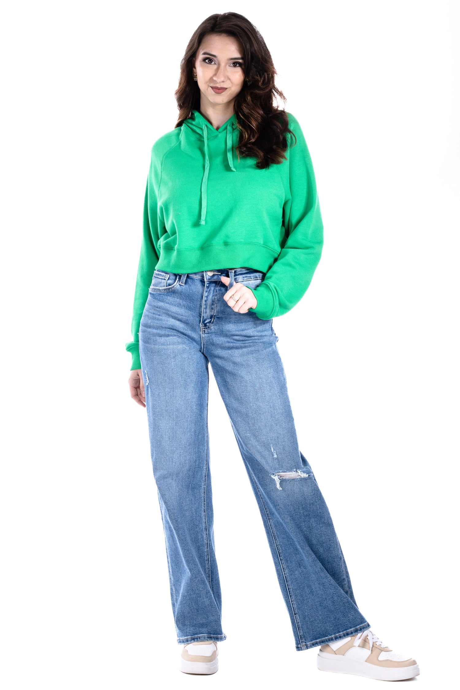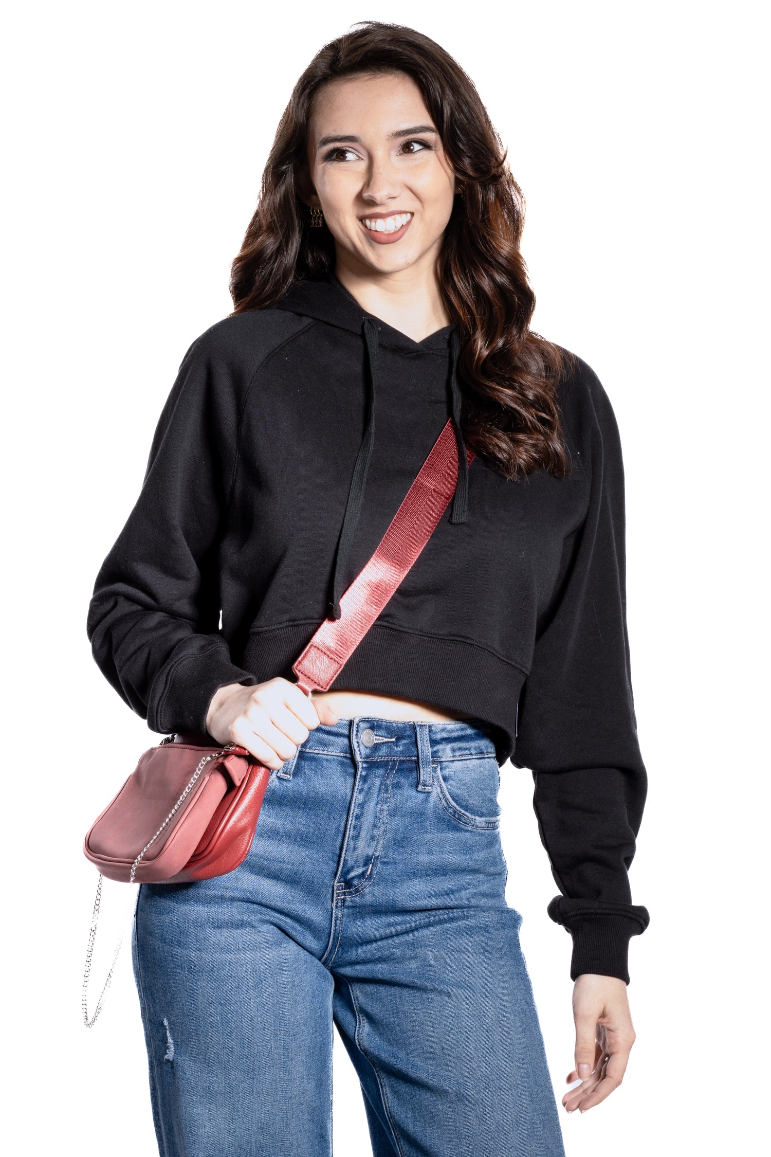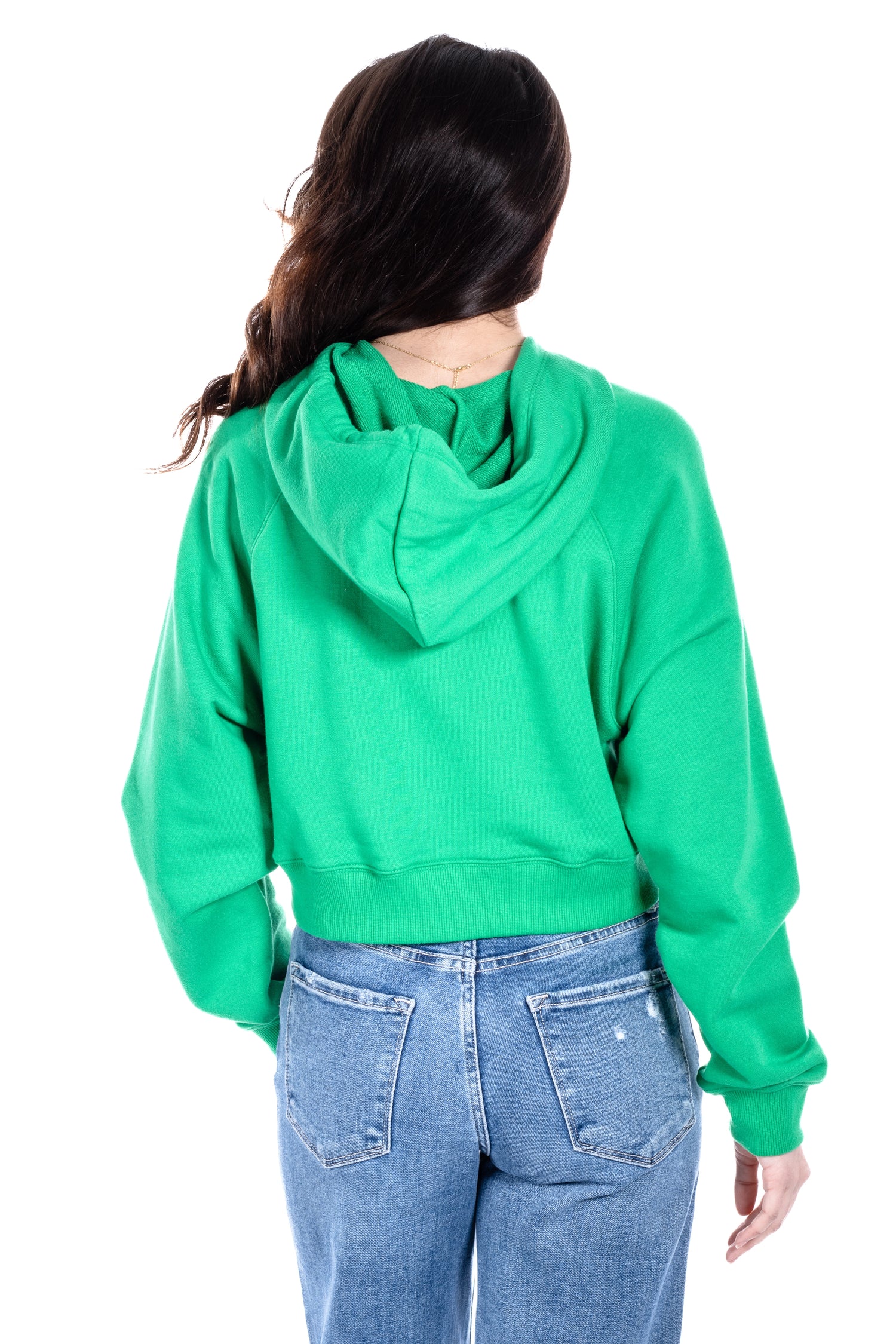 Take your relaxing to the next level with the Cropped Hoodie by Rae Mode. Featuring soft French terry fabric, a hood and adjustable drawstring. Perfect for lounging around the house when paired with the matching jogger sweatpants.