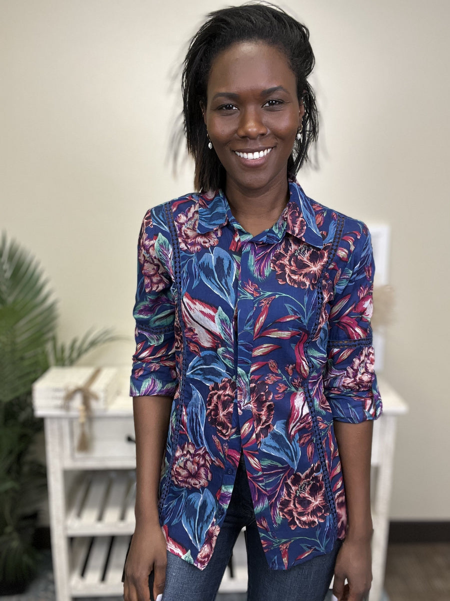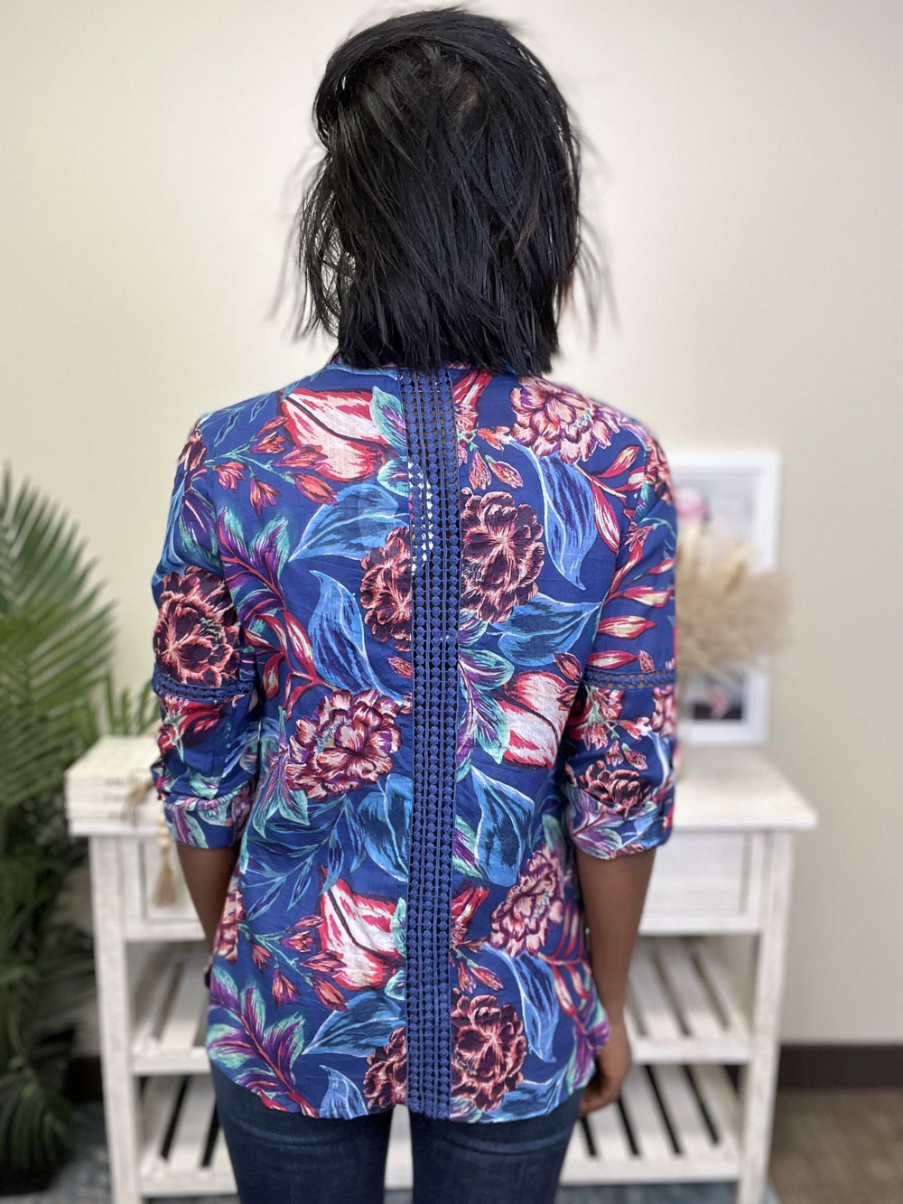 The Riptide Top by Magazine Clothing Co. will have you dreaming of Hawaii! This short sleeve button down shirt features a pointed collar, rolled and button sleeve edge, hidden front buttons, round hemline, and crochet detailing. You can just soak up the sun in this top!