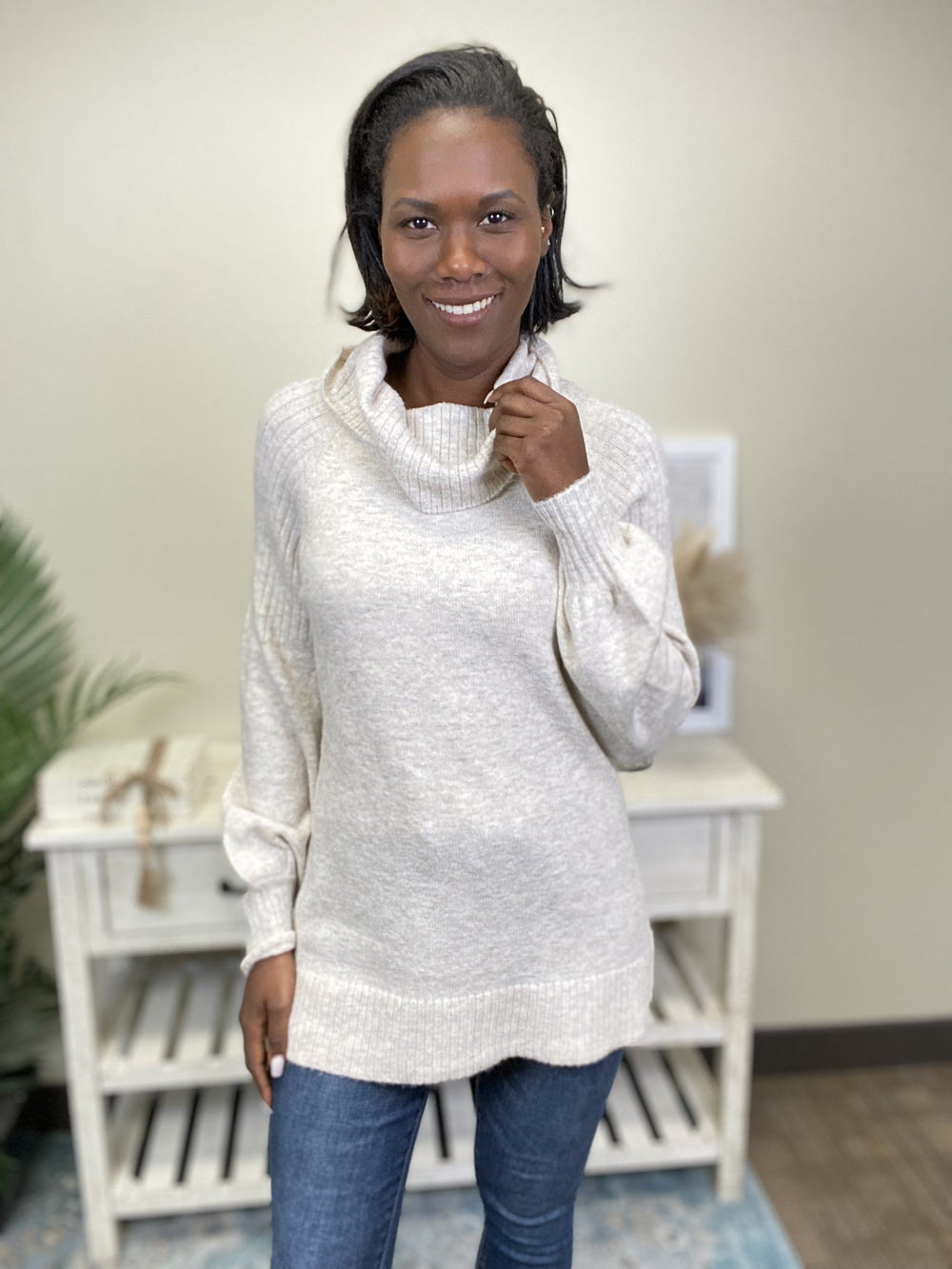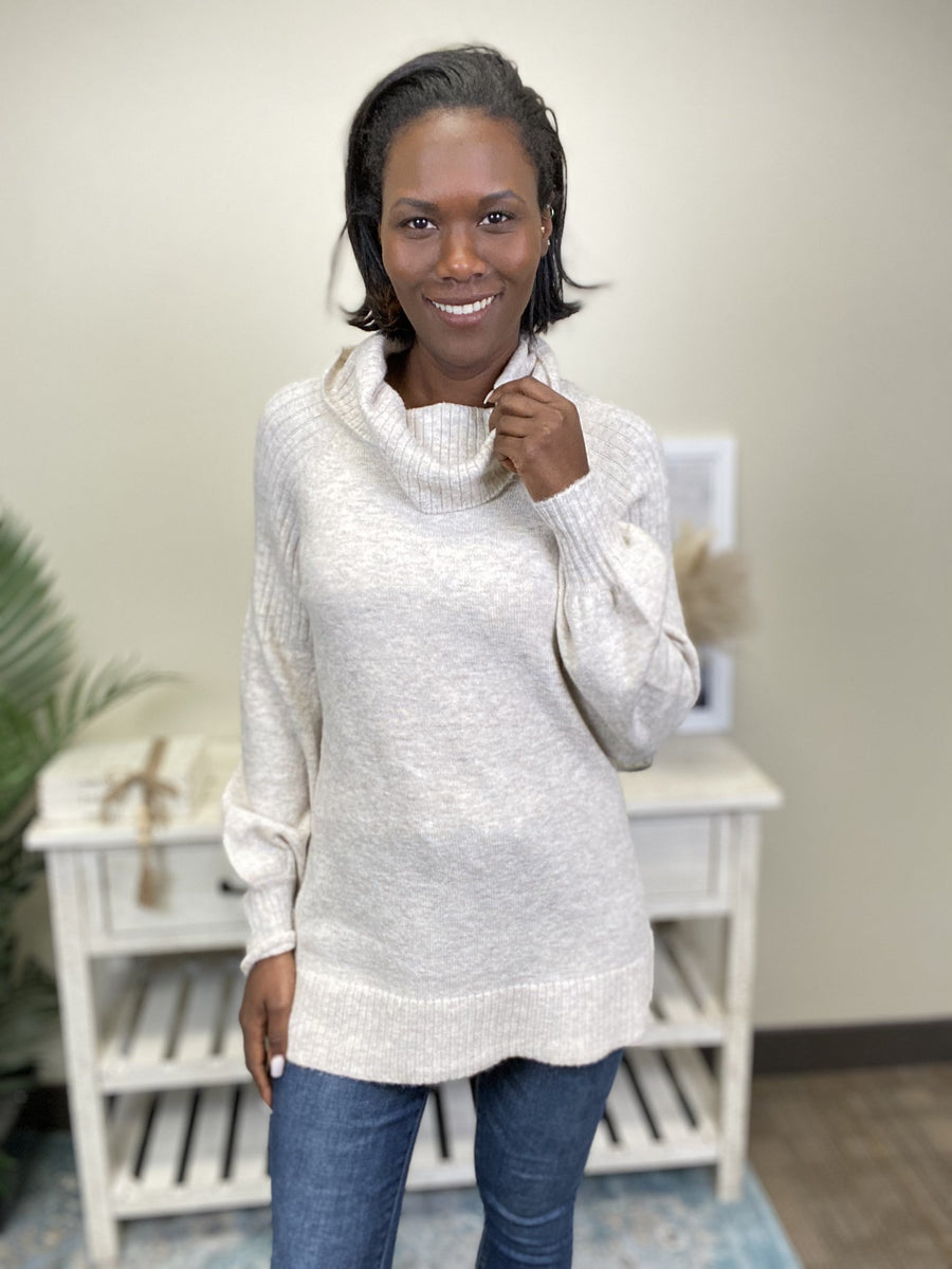 The Road Trip Sweater by Be Cool will have you ready for that rom-com style trip through the mountains! This long sleeve sweater features a ribbed cowl neckline, puff sleeves with ribbed cuff, straight ribbed hemline, and a ribbed shoulder detail. Pair this sweater with thermal leggings and boots and you have nothing to fear from the cold!