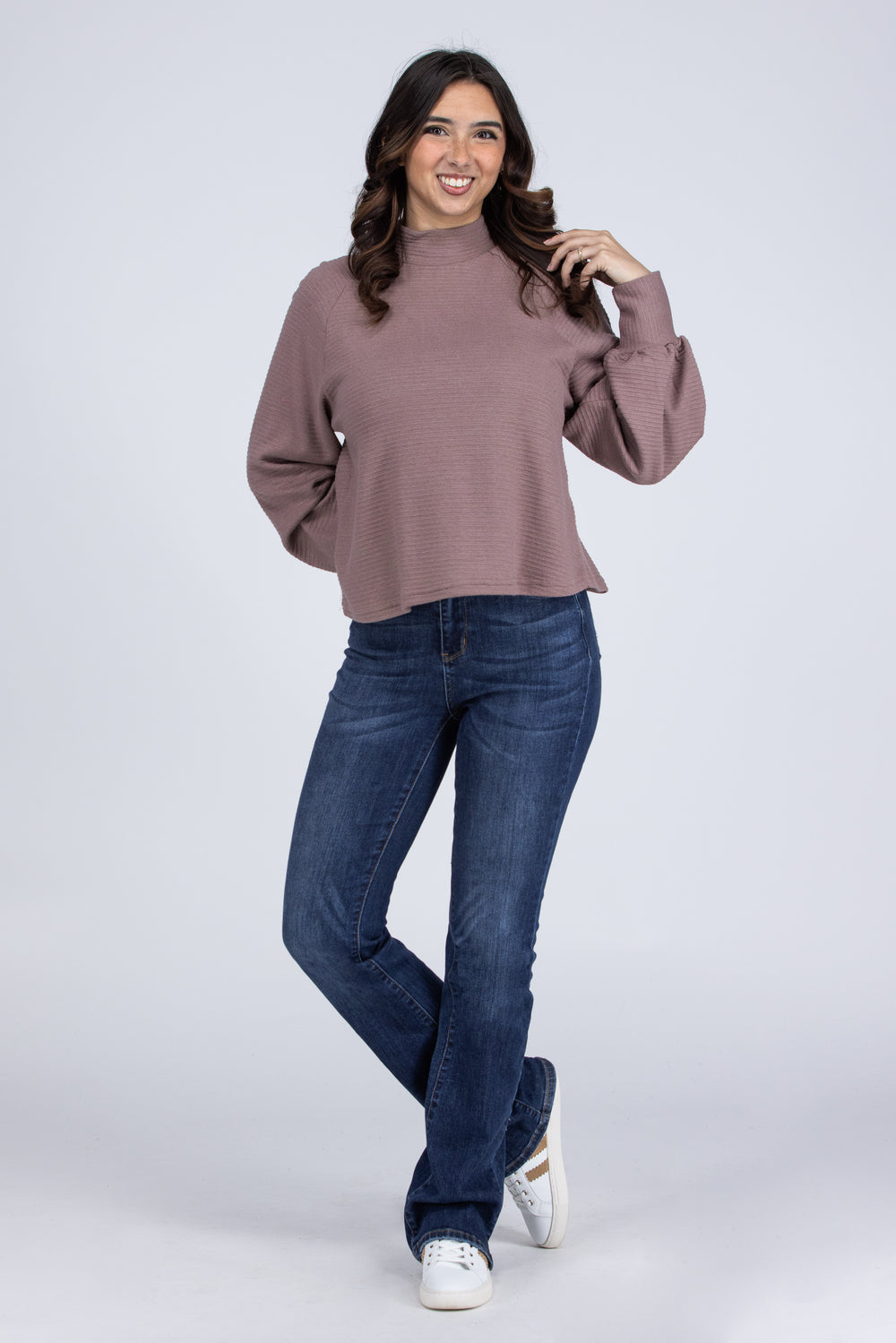 Roll Out of Bed and Go Women's High Neck Ribbed Long Sleeve Top * Final Sale*