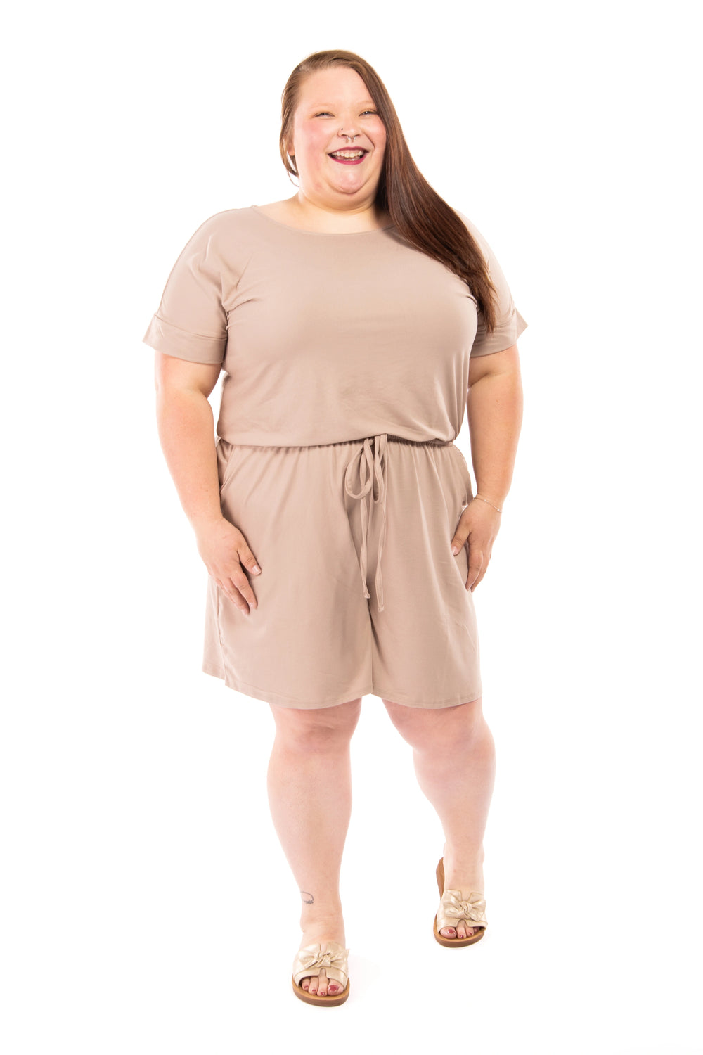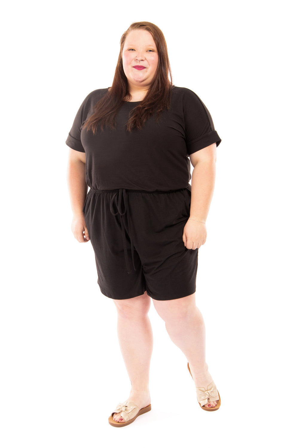 The Romp All Day Romper by Zenana will have you romping all around! This buttery soft romper features a rounded neckline with tie keyhole back closure, short sleeves, elastic waist with non-functional drawstring, and two side pockets. Wear it with sneakers or sandals for a fun day running around.