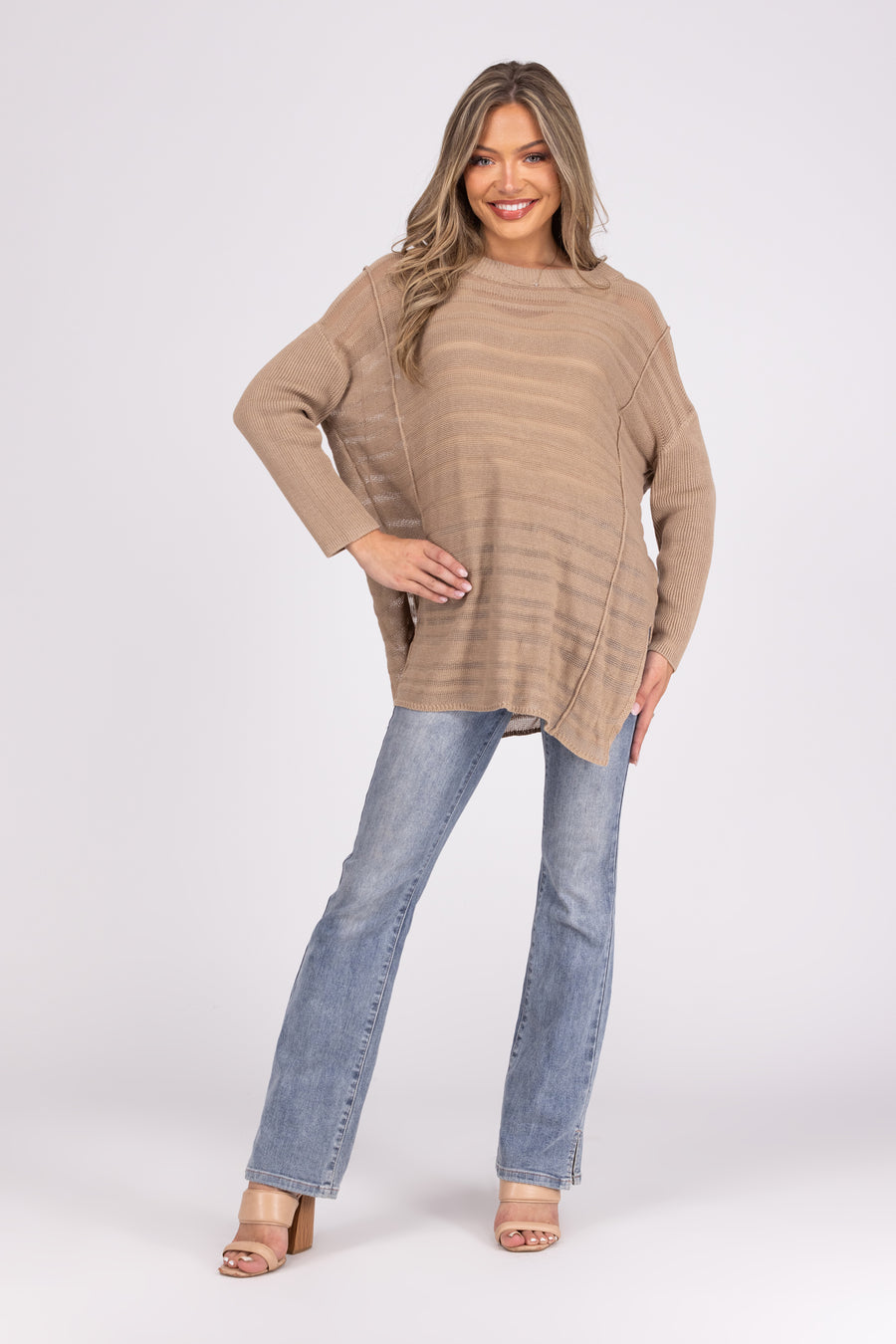 Run, don't walk to get our hands on this sweater! Everything about The Run, Don't Walk Sweater from Andree by Unit is just so classic and trendy. We are loving the striped see through detail and the oversize fit makes it super comfy. It features long long sleeves, boat neckline making it perfect for on or off the shoulder wear, and flattering side slits. Pair with your favorite pair of denim and our "Your Go To Reversible Tank Top" underneath!