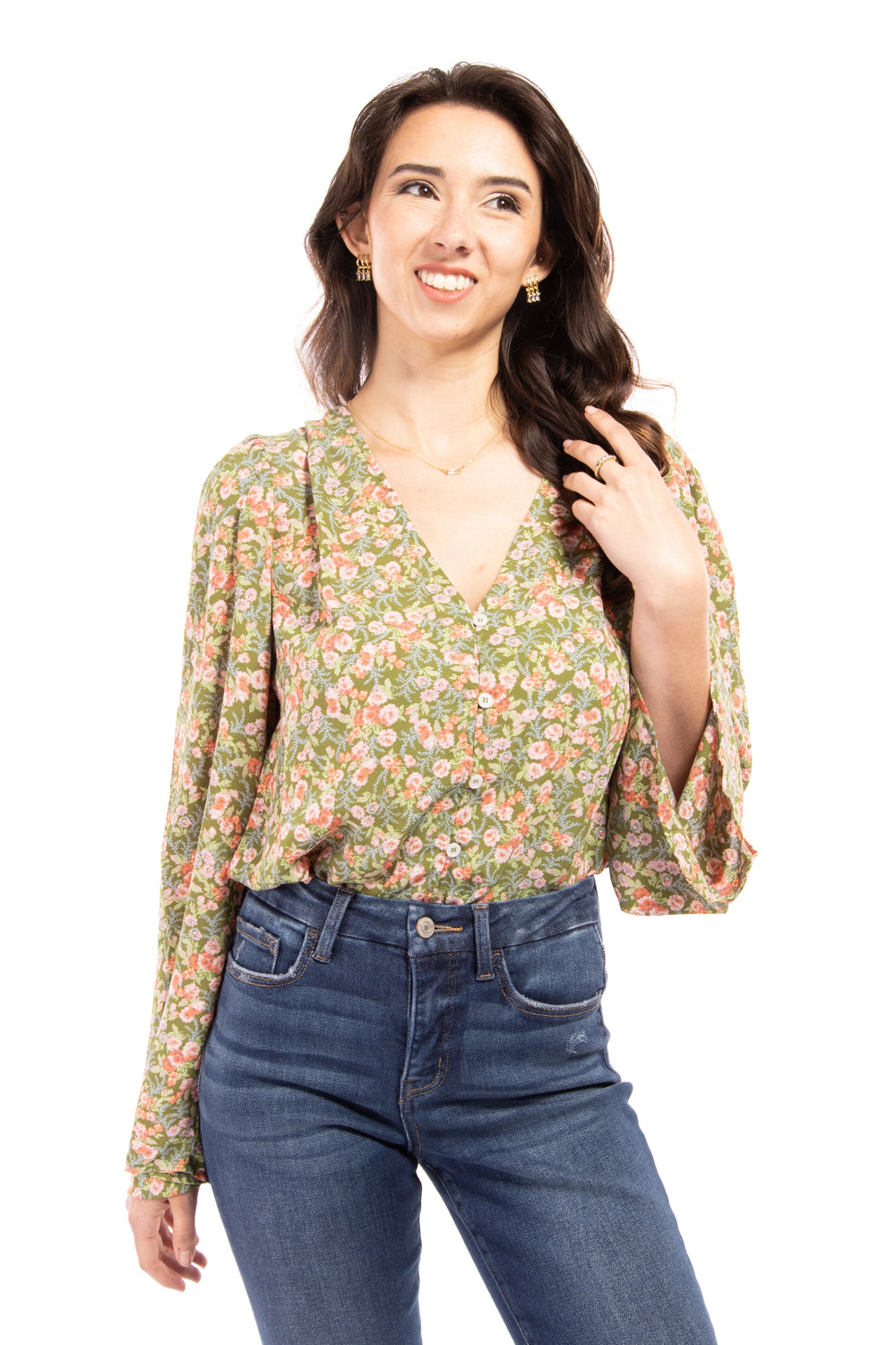 The Running Through The Fields Long Sleeve Bodysuit from Heyson will have you feeling like a wildflower growing in the fields. This gorgeous bodysuit features bell sleeves, a V-neck, and a button up front. The Running Through The Fields Long Sleeve Bodysuit can be paired with your favorite flares or skinnies for a casual look.