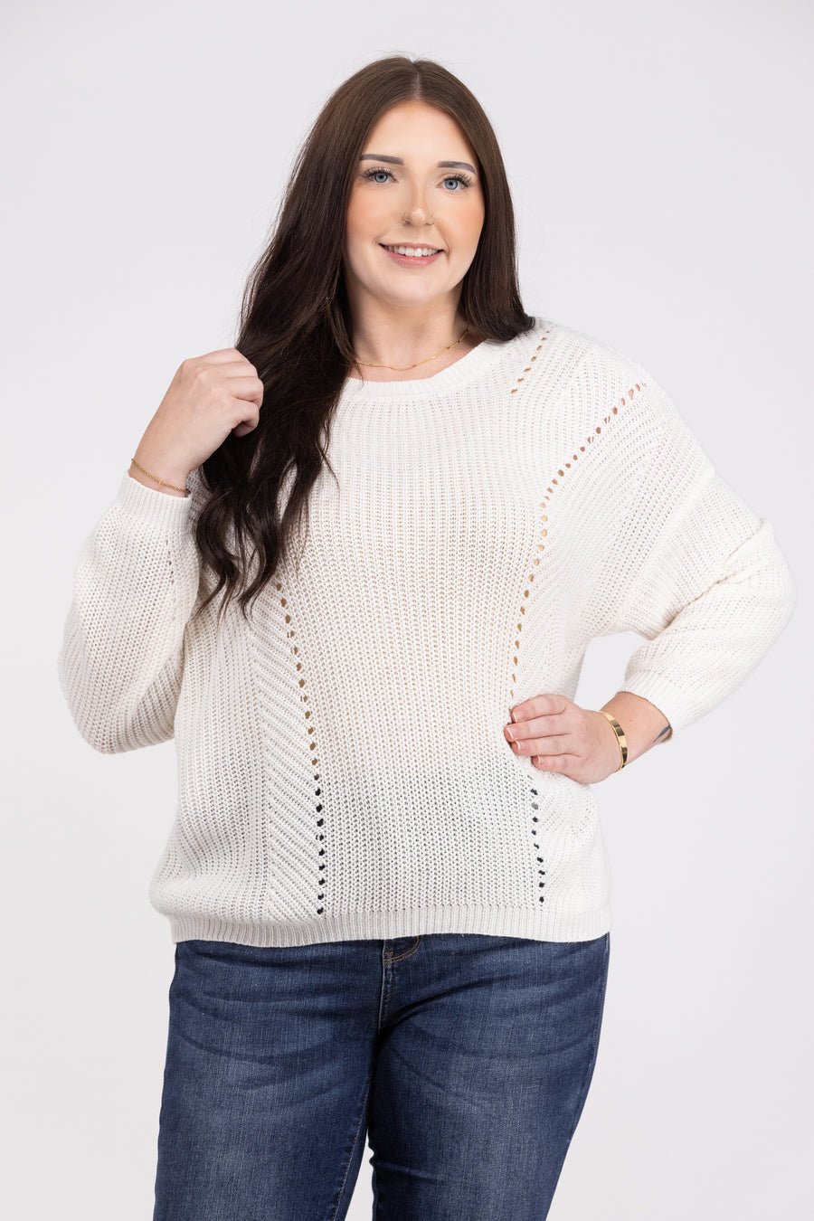 The Seeing Diamonds Sweater is the perfect sweater for gathering with friends and family. It features a slight open knit design, a ribbed knit pattern on hemline, cuffs and neckline. Pair with some dark denim and booties to be ready to mingle.