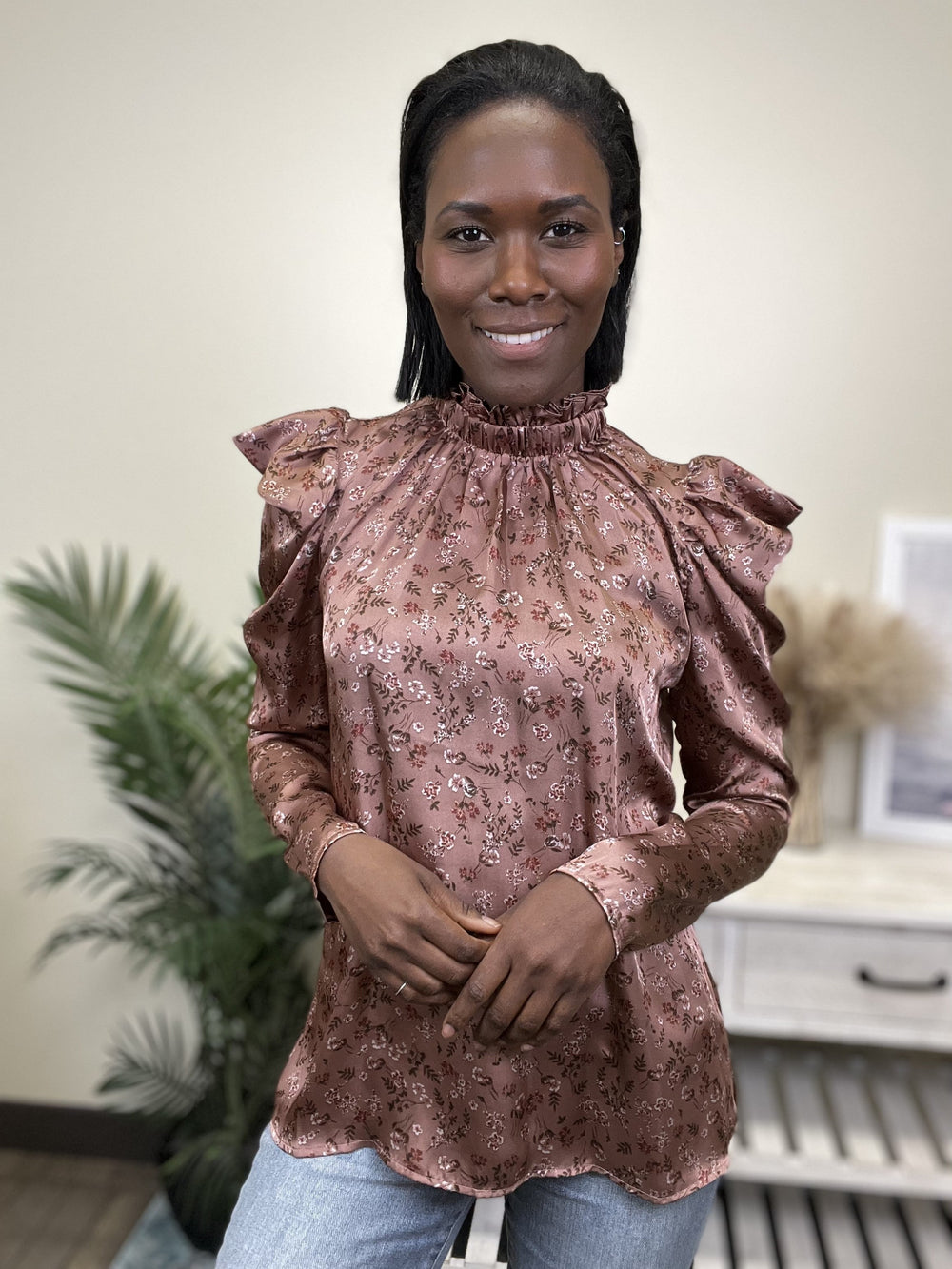 Serious Business Women's Ruffle Mock Neck Long Sleeve Top *Final Sale*