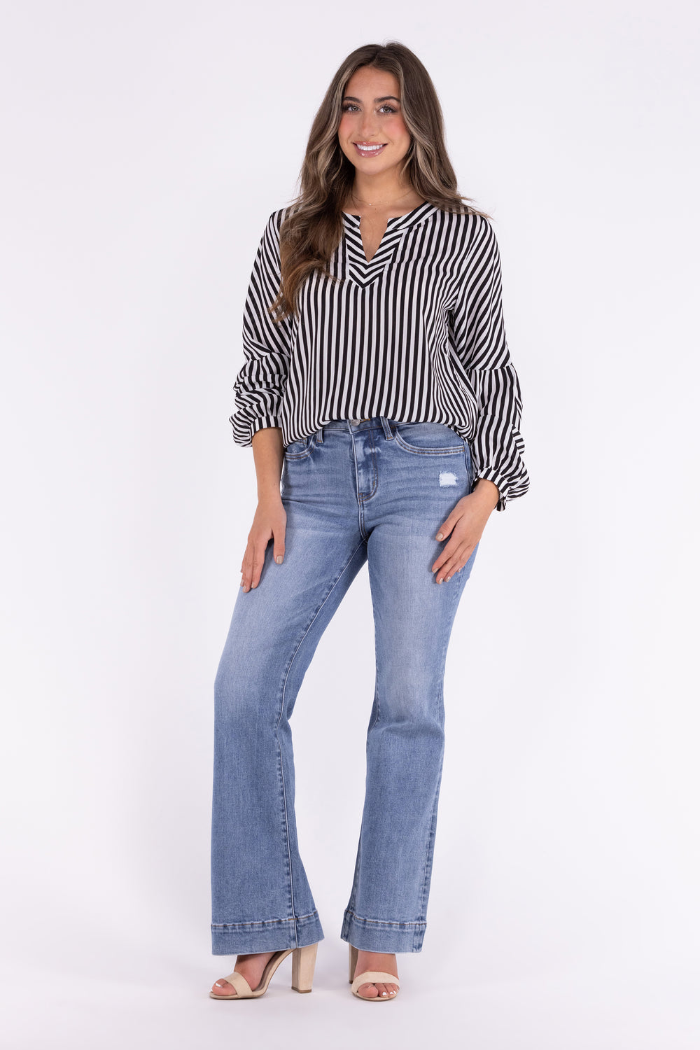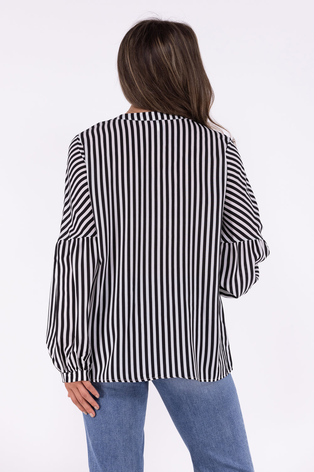 Effortlessly transition from sultry night strolls to blissful morning coffees with the Shadows of the Night Top from Andree by Unit. Featuring a trendy V-neck neckline and delicate balloon sleeves with a wrist cuff, this top is perfect for any occasion. The lightweight, dressy material will keep you looking and feeling your best all day long. Wear it untucked or tuck it into your favorite denim and add your favorite heels to dress it up!