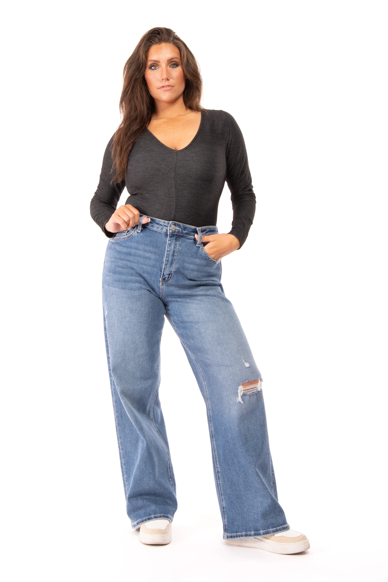 The Shining Lights Bodysuit will make you shine like the stars! It features a V neck, stretch fabric, and long sleeves. Pair with denim, jewelry, accessories, and shoes for a look that shines!