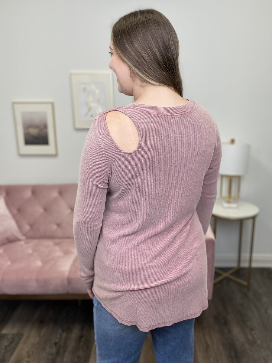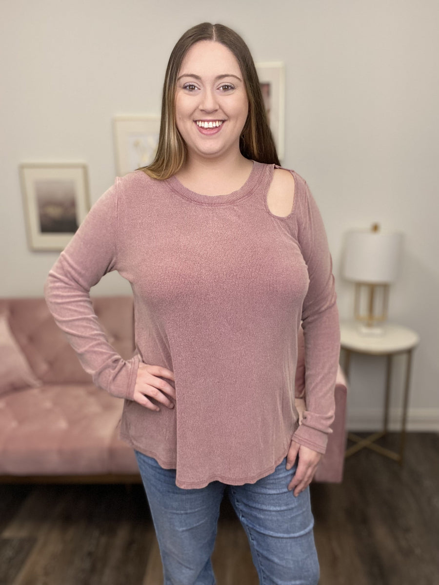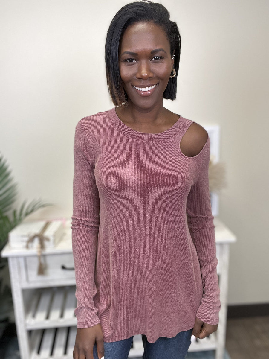 Show Out Women's Ribbed Cut Out Long Sleeve Top