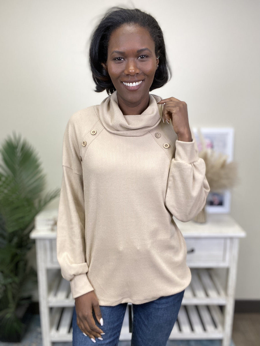 The Showing Gratitude Sweater By White Birch is the perfect sweater for this chillier weather! You can wear this sweater to any upcoming gatherings! This Sweater features a turtle neck, six decorative buttons, ribbed fabric and drop shoulder. The Showing Gratitude Sweater can be paired with your favorite denim!