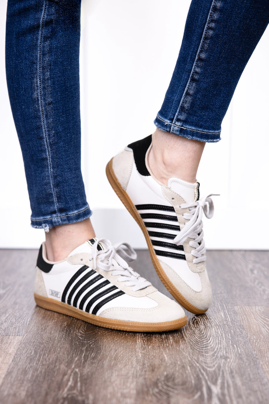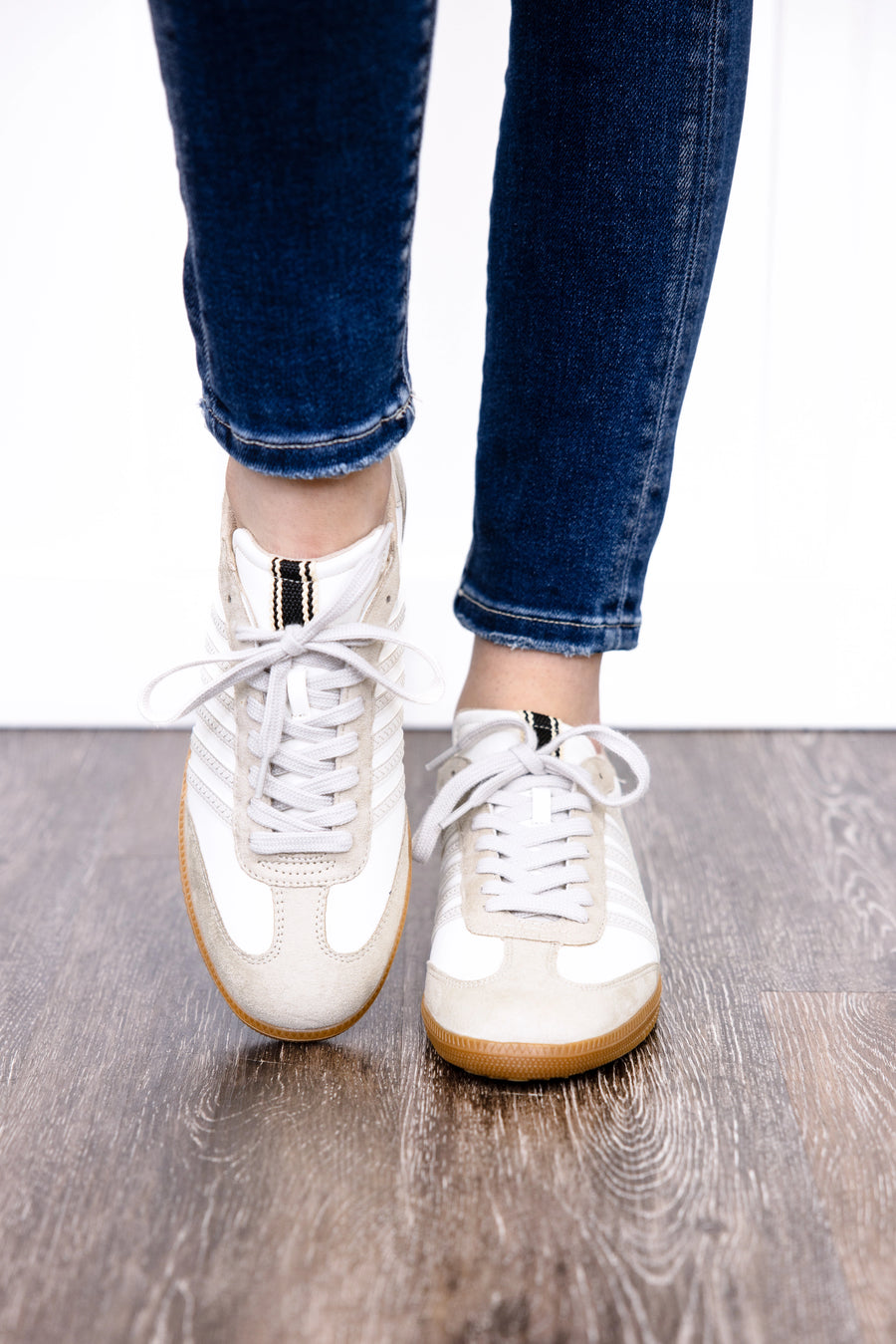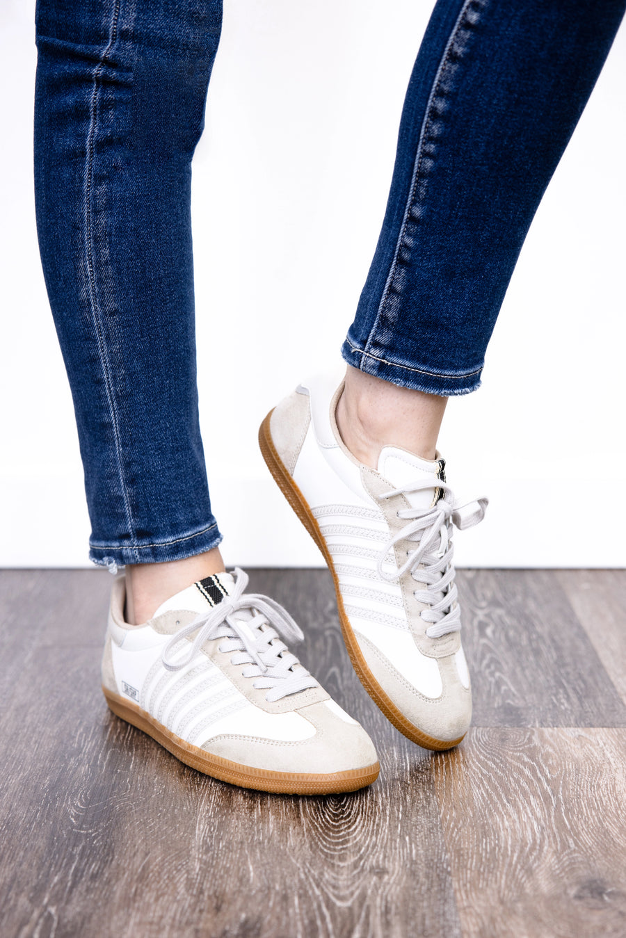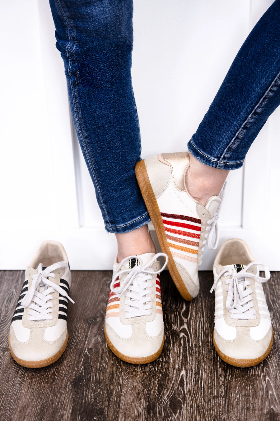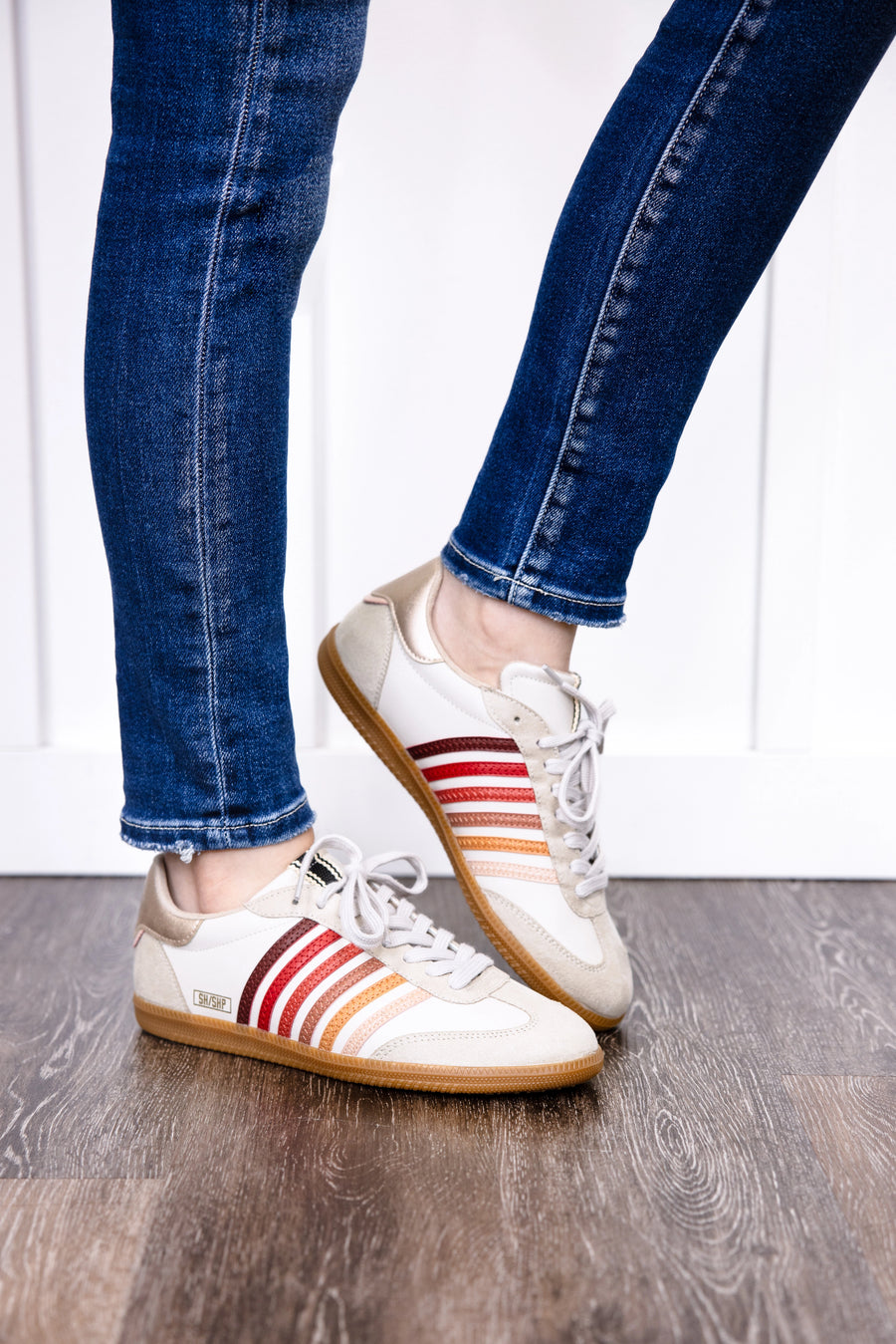 Upgrade your sneaker game with the Shu Shop Stevie Sneaker! These sneakers offer both style and comfort with their round toe, leather upper and lace-up closure. The stitched striped detailing and suede front add a trendy and modern touch. The rubber outsole paired with the perfect "smoosh" factor provides functionality and fashion for everyday wear. Elevate your look with the Stevie Sneaker!