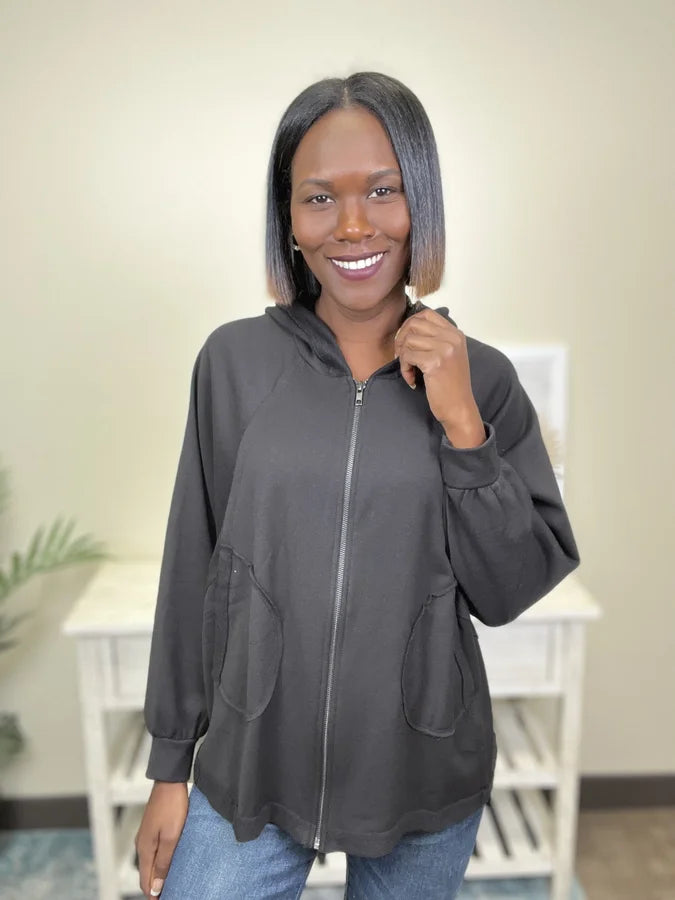Simple Embrace Women's Loose Fit Hi Lo Zip Up Hoodie * Final Sale*