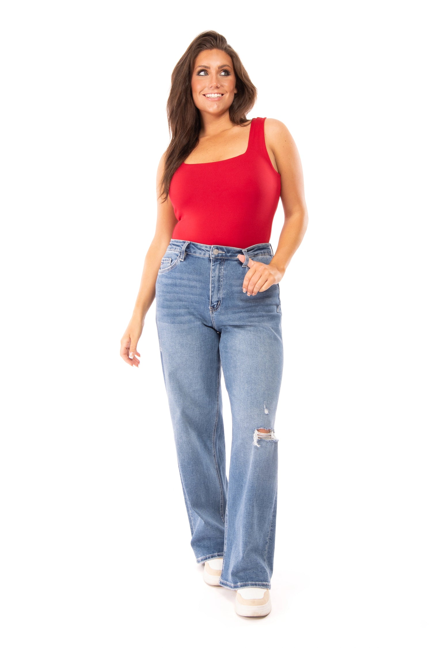 The Simply Me Bodysuit by White Birch will fit so well with your body shape. You can wear this for a fun night out with friends! This bodysuit features a square neckline, solid knit, sleeveless, and functional button snaps. The Simply Me Body Suit can be paired with your favorite denim!