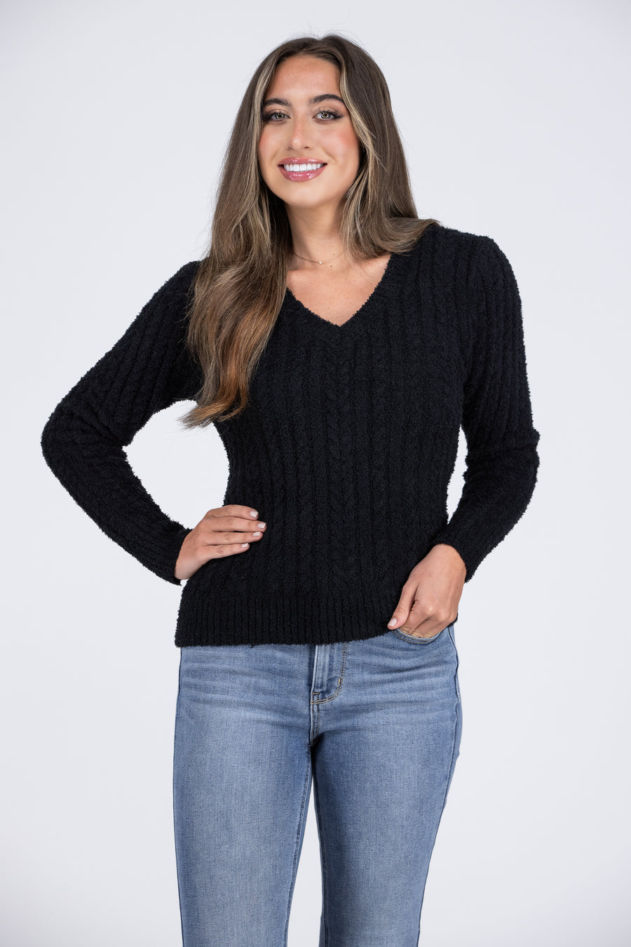 Get ready to look all sweet and cute in this Snuggly Style Sweater from Allie Rose!! With soft cloud ribbing throughout, it shapes a V neckline, straight hemline and long sleeves for a classic style. The straight fitted bodice is all about creating an effortlessly stylish look.