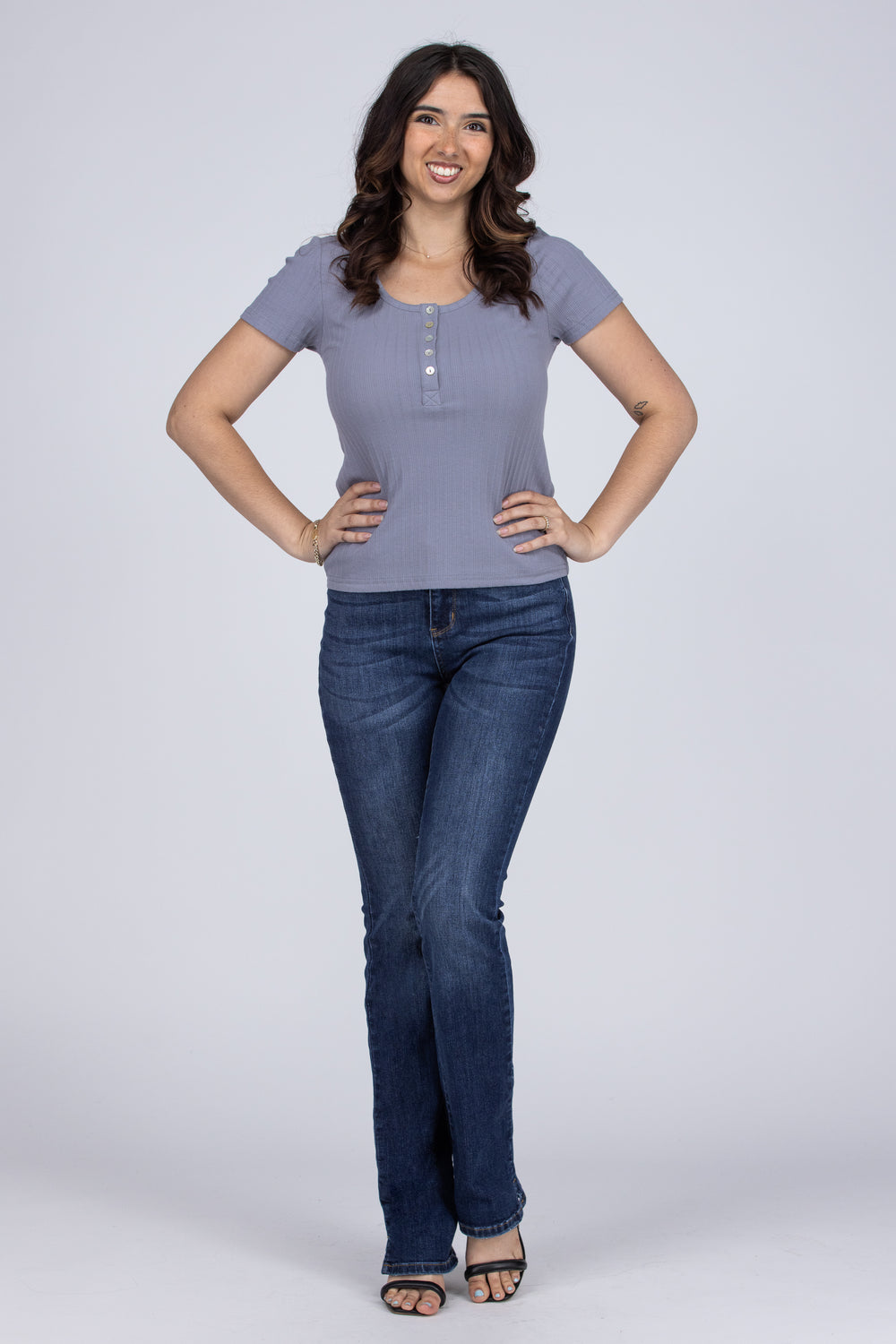 The So Good to Me Top by Mittoshop is a closet staple must have! It features a round neckline, functioning quarter button up, ribbed detailing, and a straight hemline. This Top will become your new favorite! It will be so cute with any bottoms to dress up or wear casually!