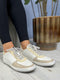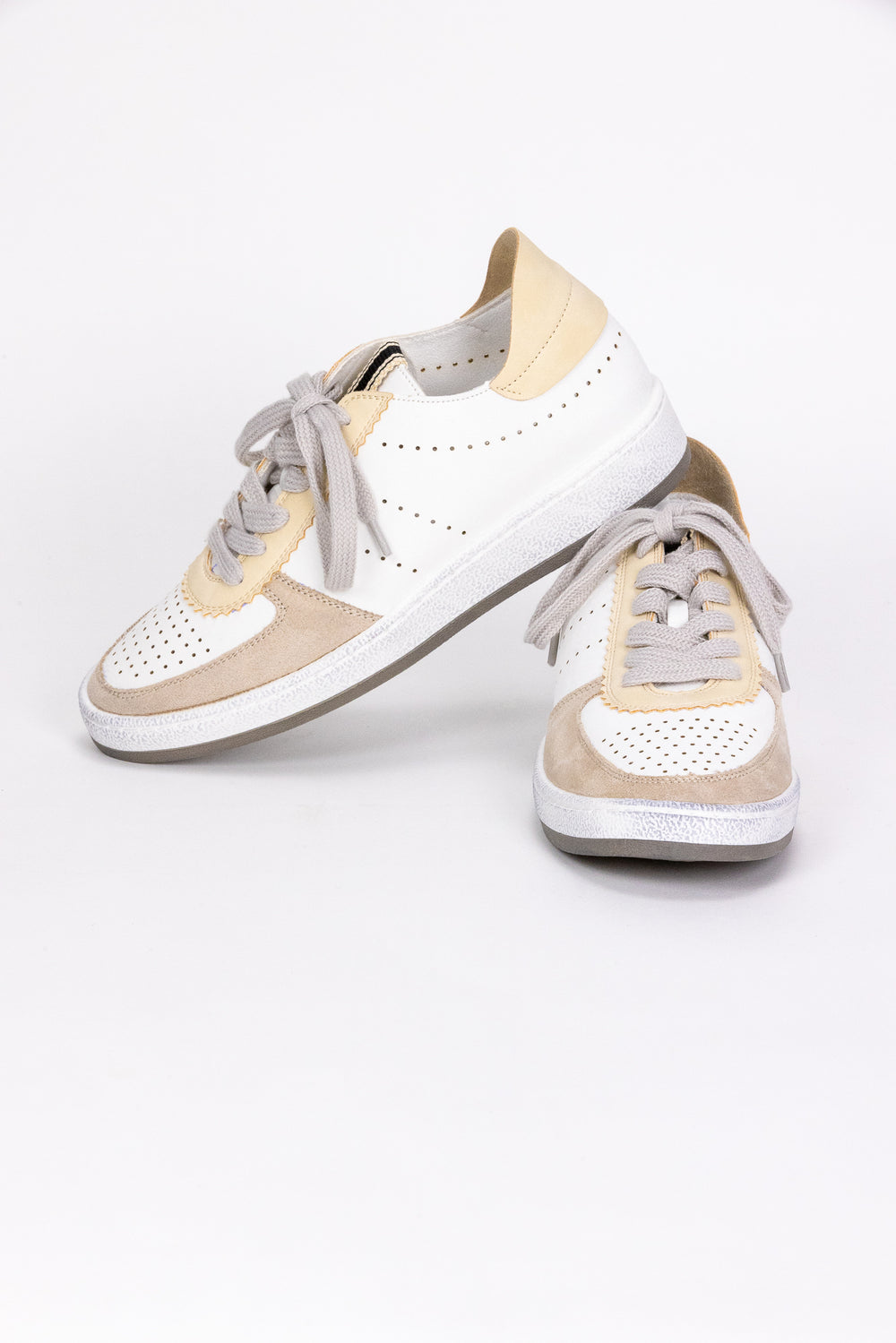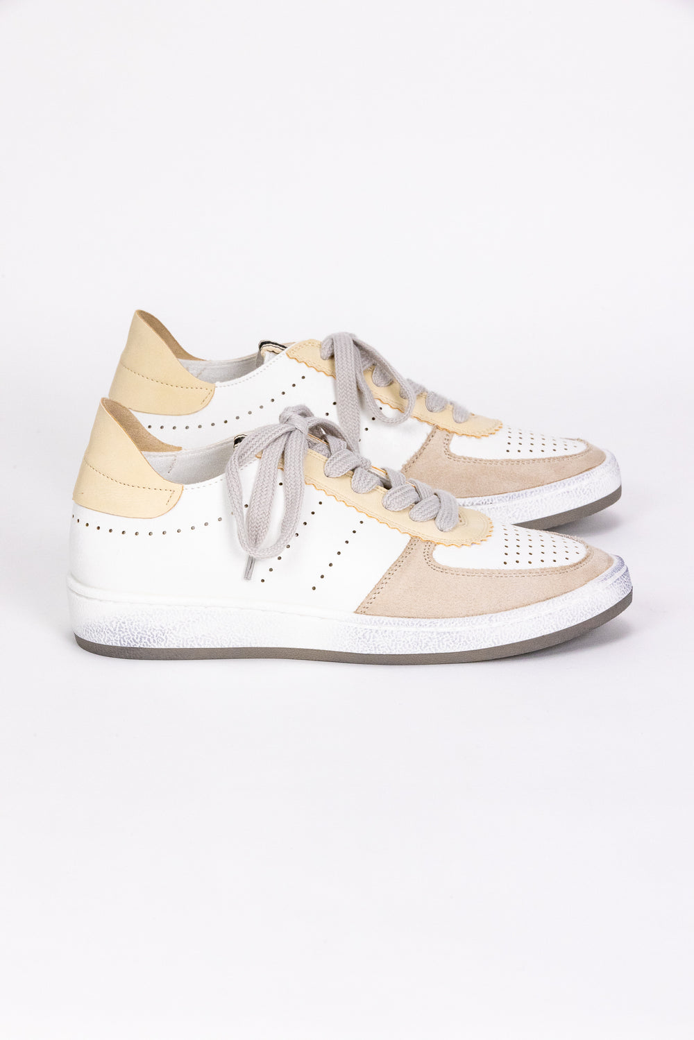 The Solange Sneaker by Shu Shop offers comfort in every facet of this shoe! It features a round toe, lace up closure, super thin upper for extra flexibility, extra high heel for no slippage, contrasting fabric for style, and a pre-distressed sole for that loved-in look! Shu Shop is know if that pre-loved look, but with the quality of brand new shoes!