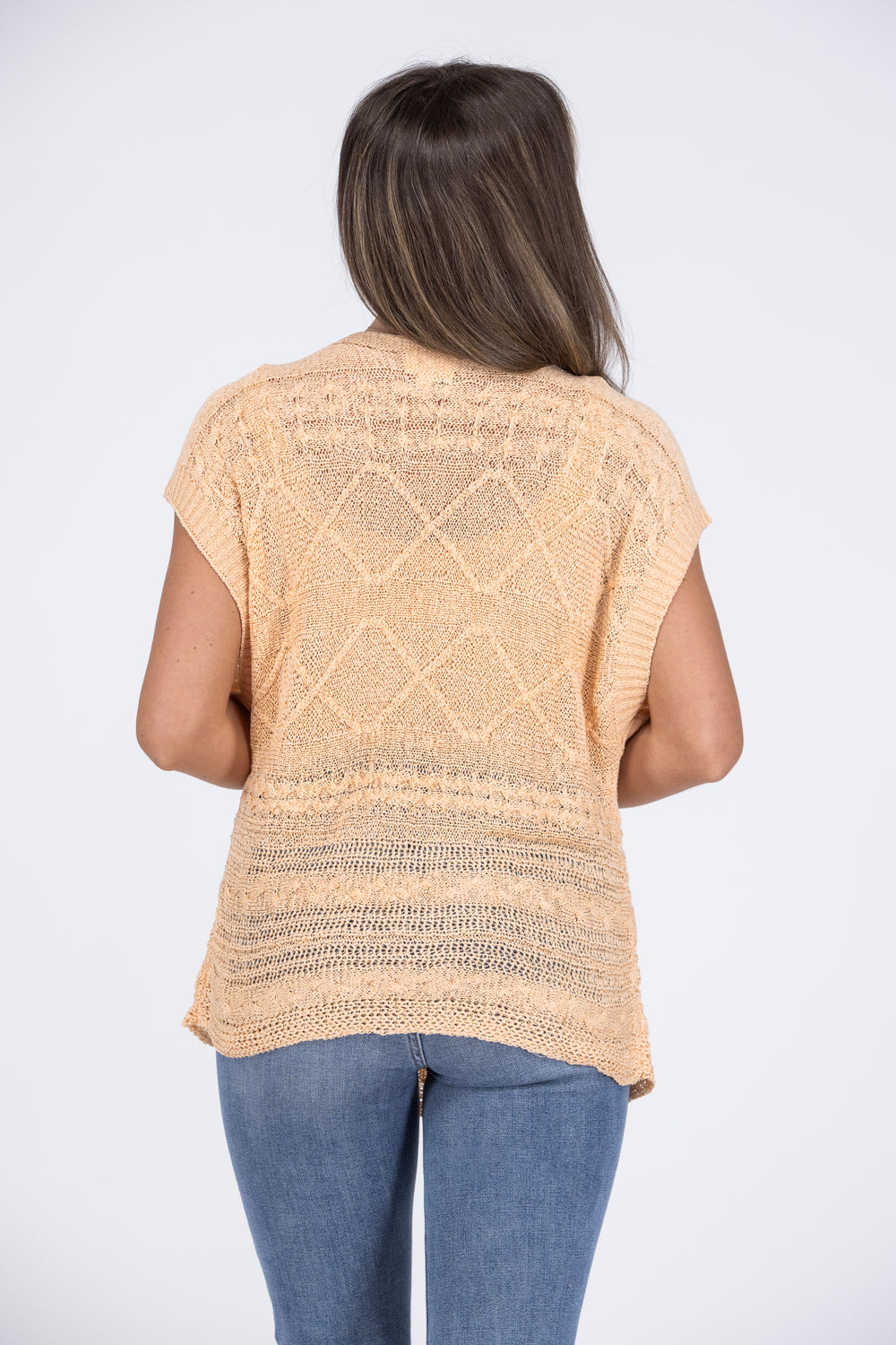 The Soul Full Of Sunshine Top by 143 Story will make your soul happy. This beautiful cable knit sweater features a boat neck, short dolman sleeves, and a straight hemline. Wear this over a tank and pair with your favorite denim capris.
