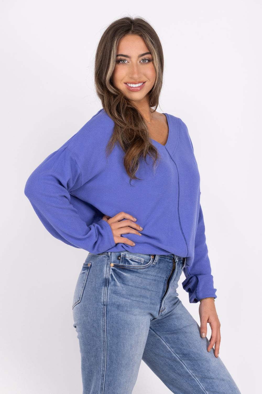 Split Decisions Women's V-Neck Oversized Long Sleeve Top * Final Sale*