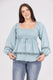 The Spruce It Up Top by 143 Story is a textured solid woven top. It features long balloon sleeves, smocked bodice with ruched detail, square neckline, tiered hemline, and lace detailing. The Spruce It Up Top will pair perfectly with white skinny denim and nude sandals or wedges!