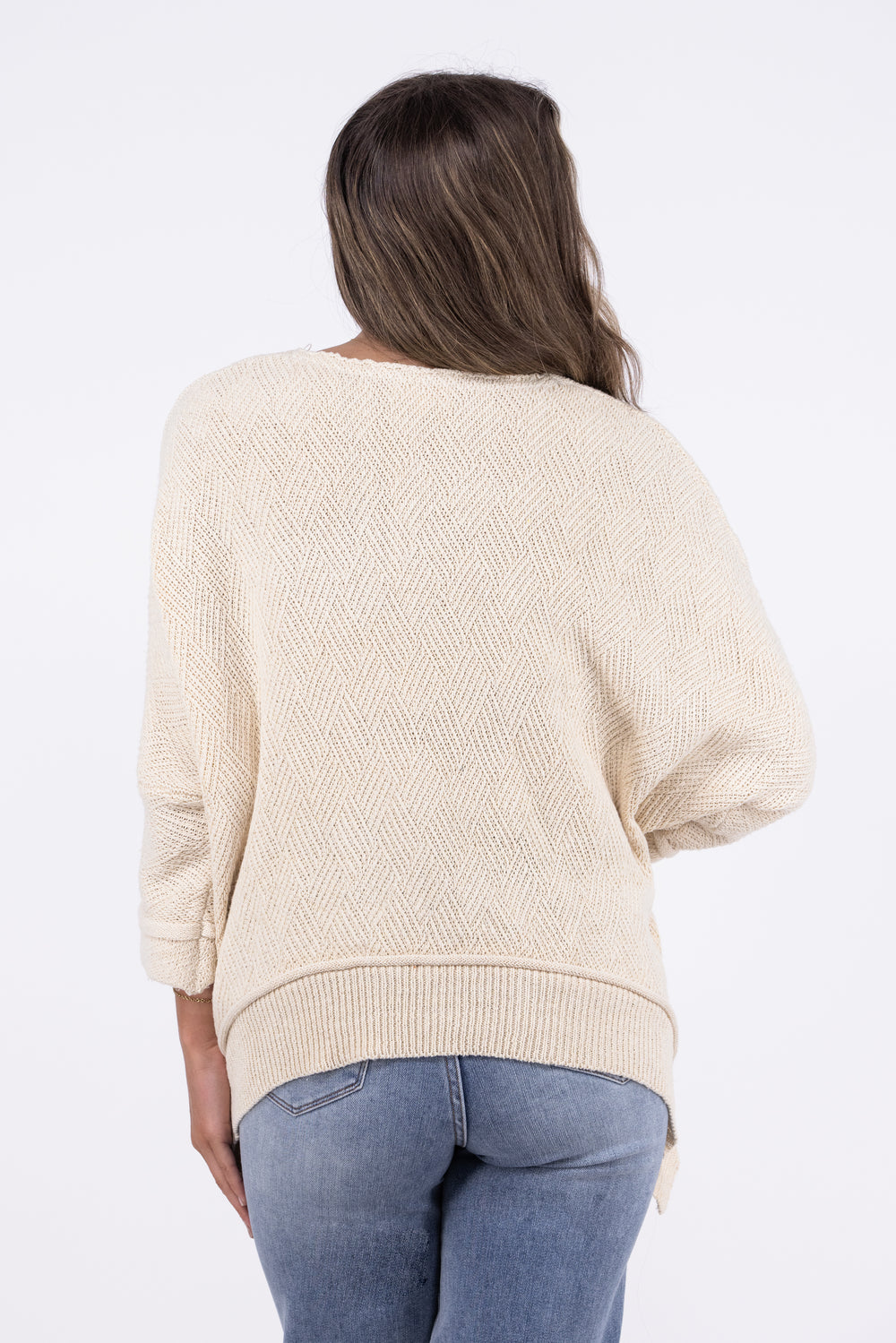 The Stroll Simple Top by Entro is the perfect fall walking sweater! It features a round raw rolled neckline, short dolman sleeves with cuff and raw edge detail, waterfall ribbed hemline with raw edge detail, and beautiful diamond knit pattern. Slouchy sweaters make fall the best season!