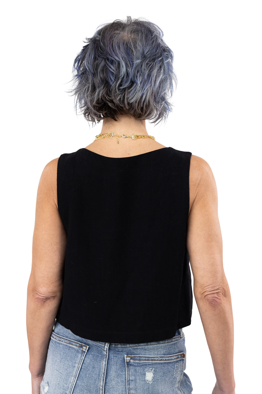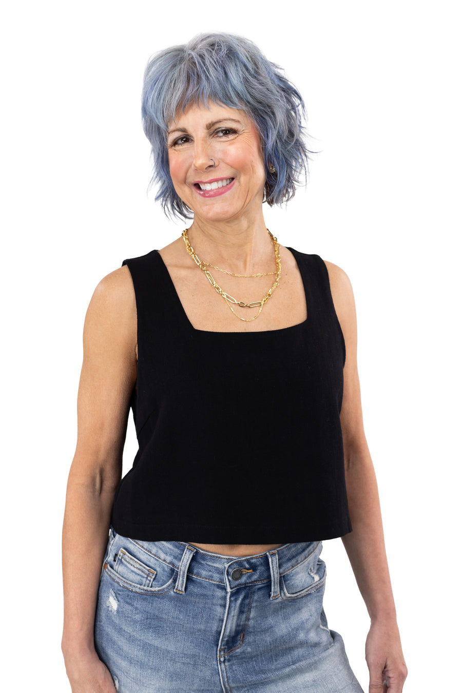 This tank by Allie Rose is a fun cropped tank. It features a square neckline, soft linen fabric, and is fully lined. For a fun casual look pair these with your favorite denim or dress it up with a pair of dress pants.