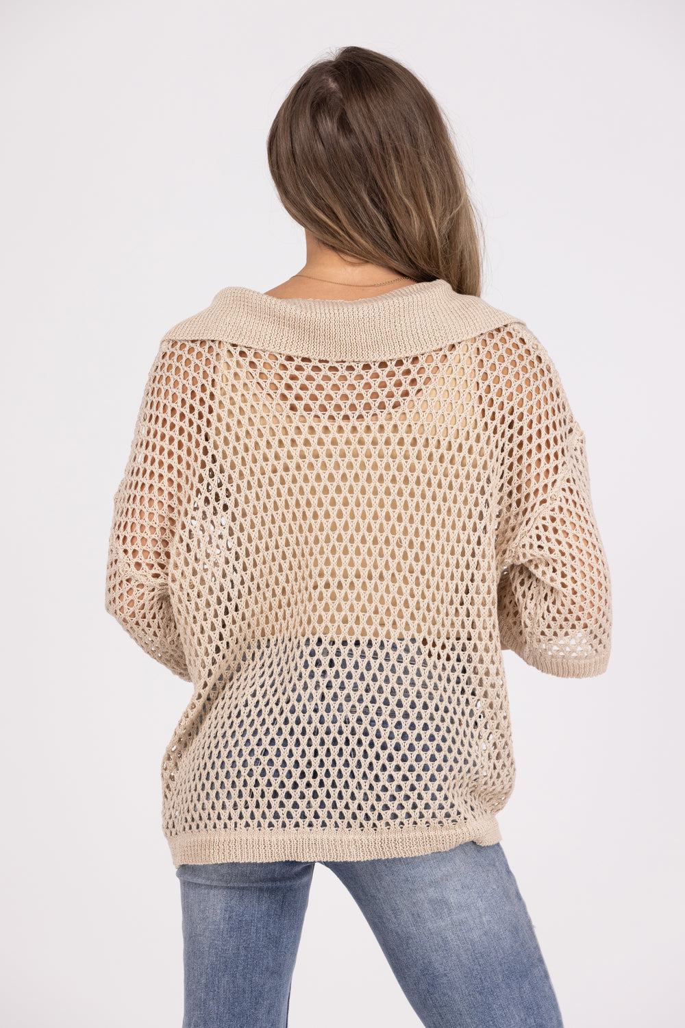 Sweet Breeze Women's Collared Neck Short Sleeve Sweater