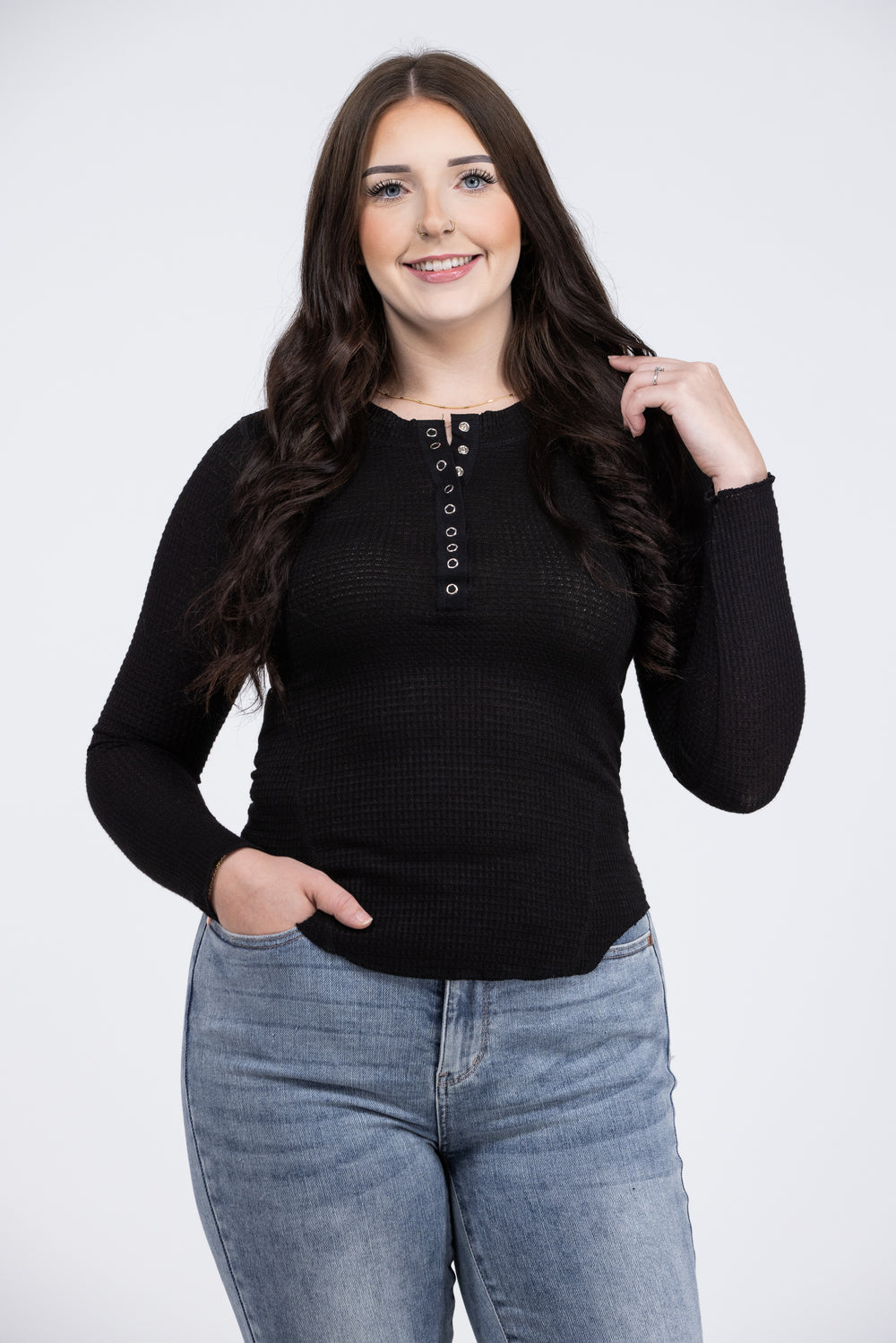 The Sweet Like Honey top by Zenana is just the addition you need to your wardrobe. This top features functioning snap buttons, waffle knit, and a rounded hi-lo hemline. The Sweet Like Honey Top can be paired with your favorite denim!