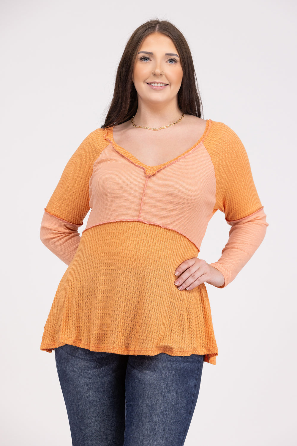 The Take Me On A Trip Long Sleeve Top from White Birch is so comfy it'll have you ready to take a trip anywhere! This color-blocked top features a v-neckline with exposed stitching and waffle knit fabric. Perfect with denim or your favorite lounge pants!