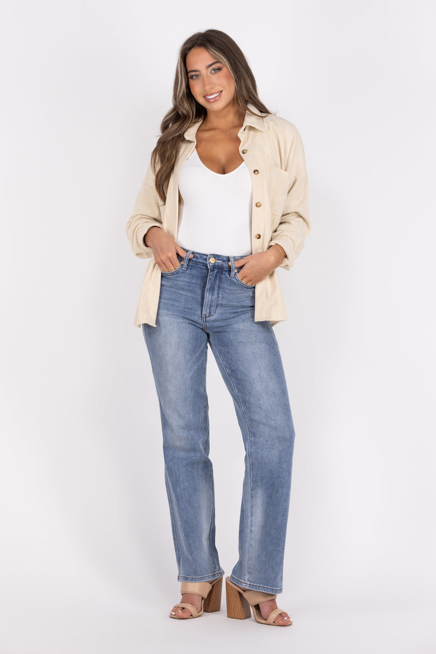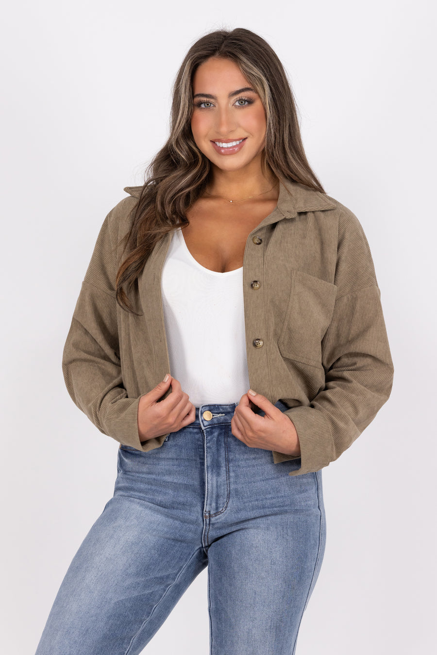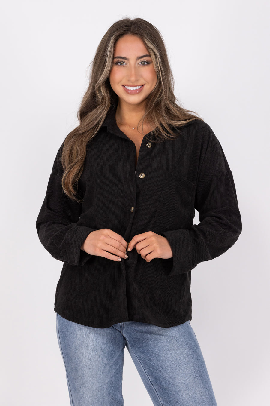 Why do button downs have to be boring?! The Tangle Of Cords Top from Andree by Unit brings a unique fabric to your favorite button down style! It features a collared neckline, full button down, long sleeves with cuff, chest pocket, and a round hemline. The corduroy adds wonderful texture that you will love!