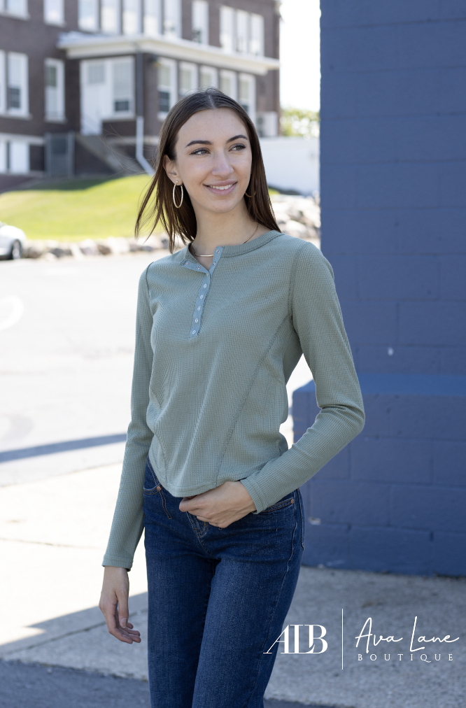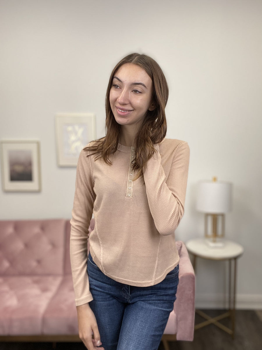 Tell Your Story Women's Snap Button Waffle Long Sleeve Top *Final Sale*