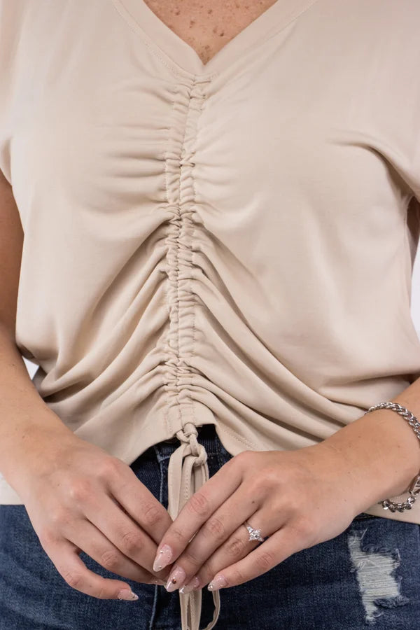 Be stylish with our new Tempus True Fit Top. The Tempus True Fit is a must-have top with its slim and sleek design. Featuring a low-profile V-neck and a front-adjustable ruche, you can make this style your own. This top goes well with your choice of denim.