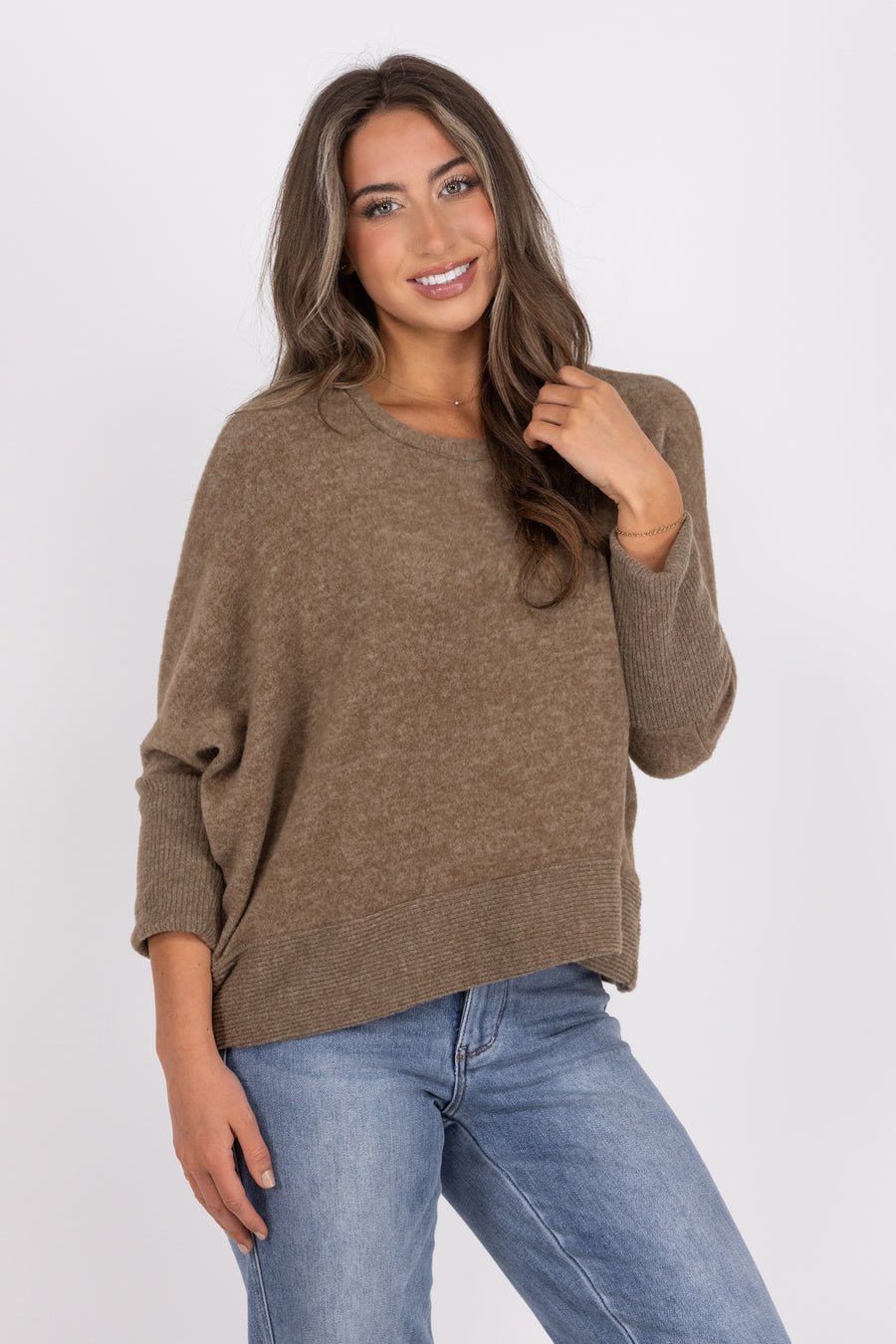 The Texts To You Sweater by Zenana is perfect for lounging or running errands. It features a round neckline, ribbed dolman sleeves and a ribbed design along the hem. Pair with leggings and feel comfortable all day.