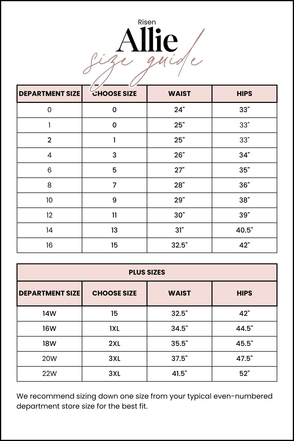 - Rise (Sizes 0-15): 10.25 inches